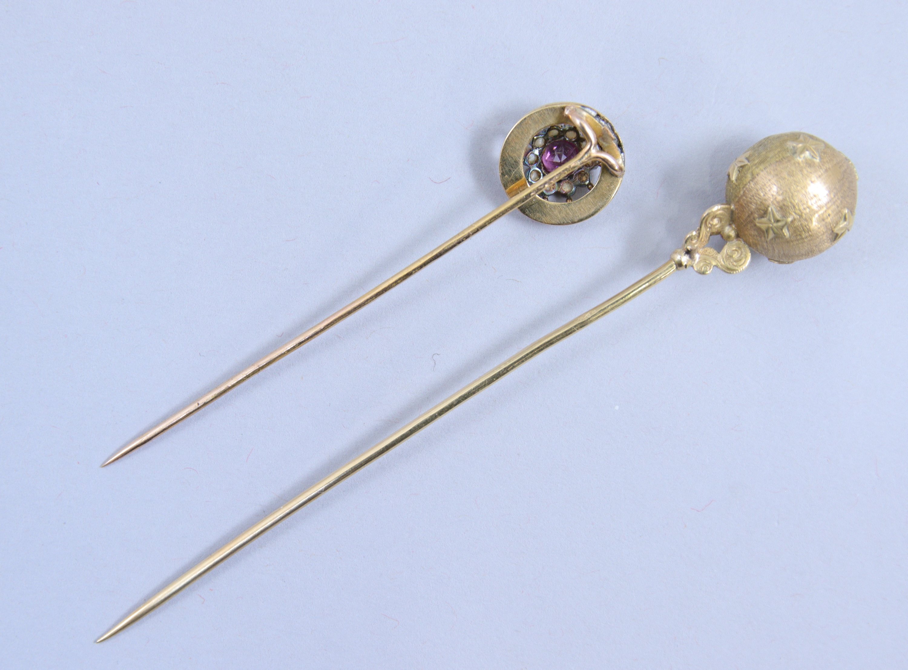 Deux épingles de cravate en or jaune 750 millièmes :