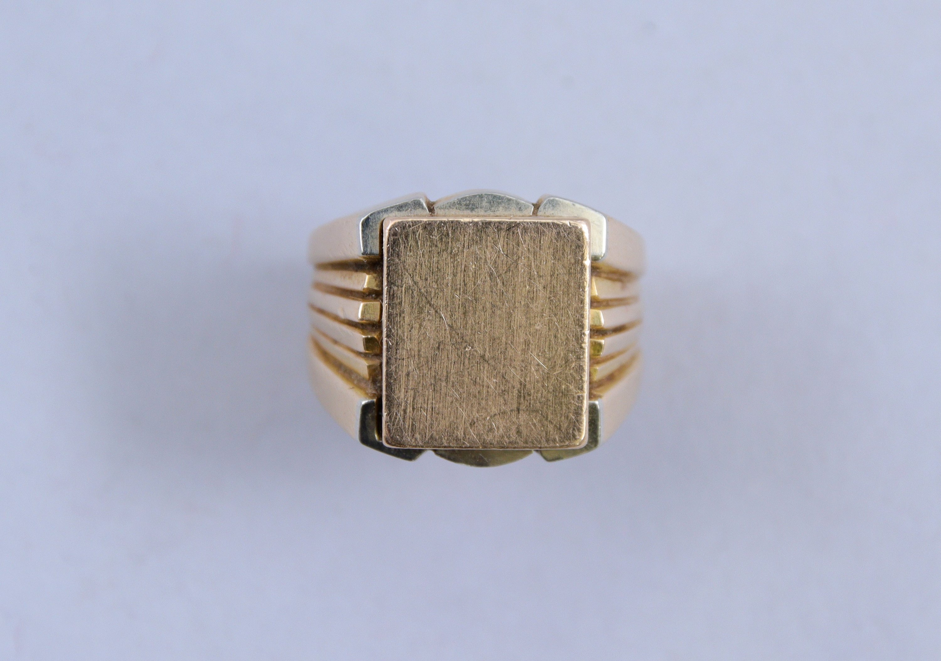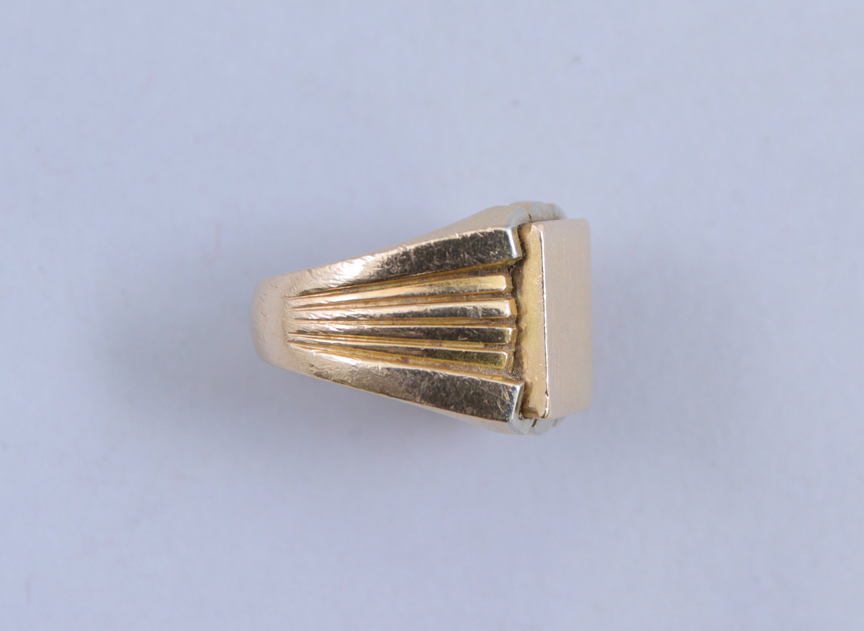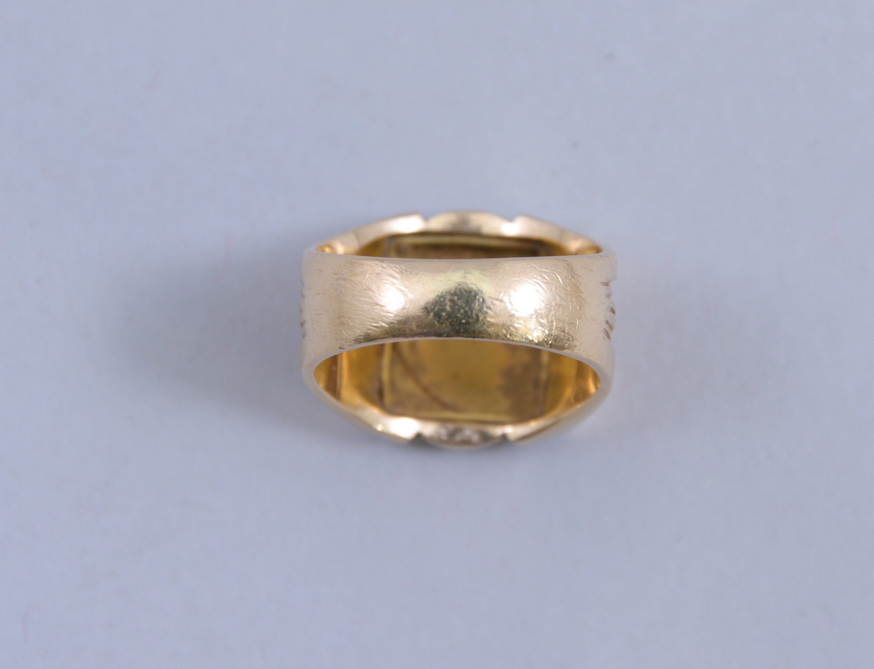 en or jaune 750 millièmes, le chaton non monogrammé, l'épaule à décor strié.