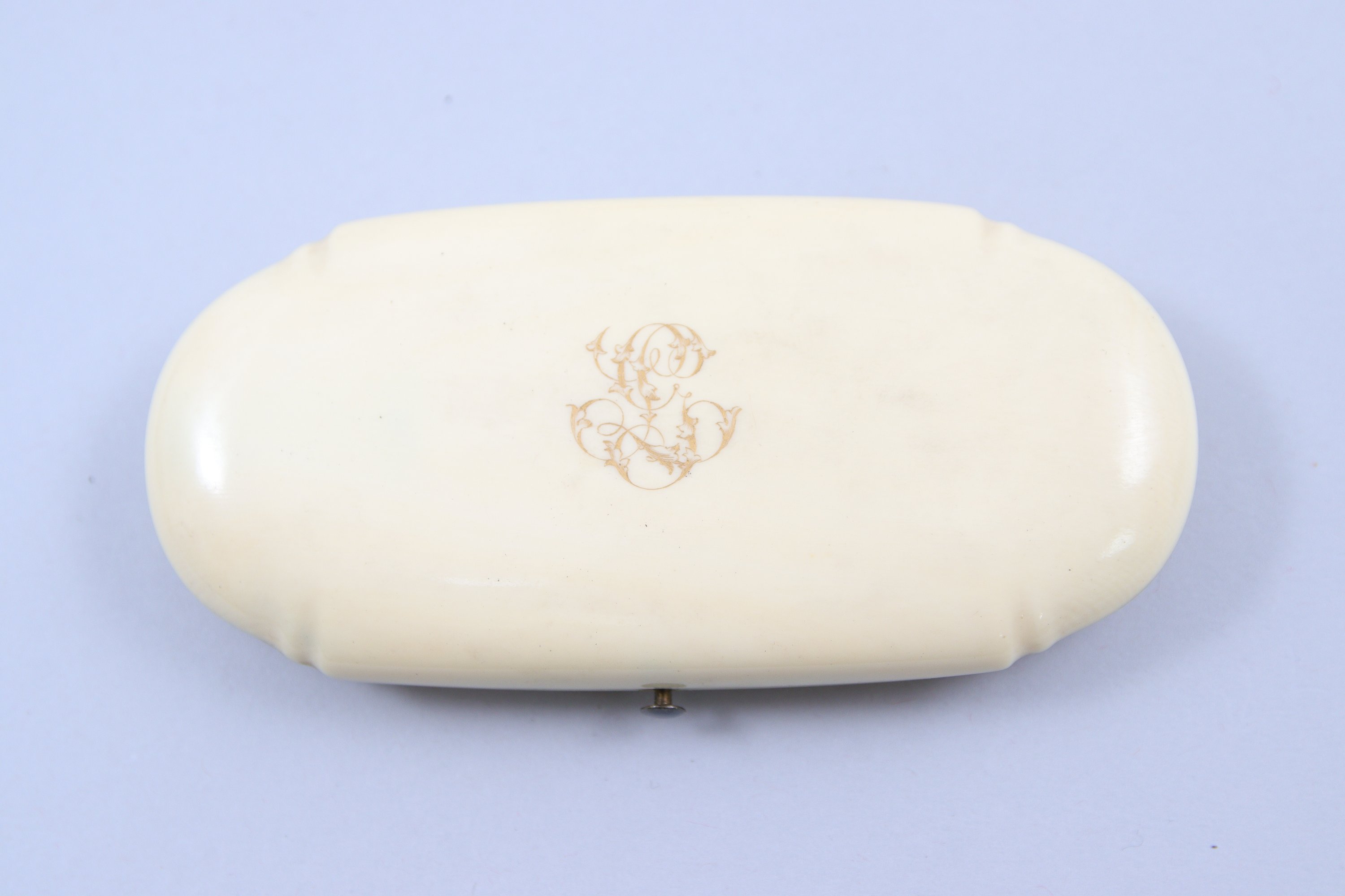 Dans un écrin monogrammé. Housse de protection en cuir bleu (manque de le bouton).