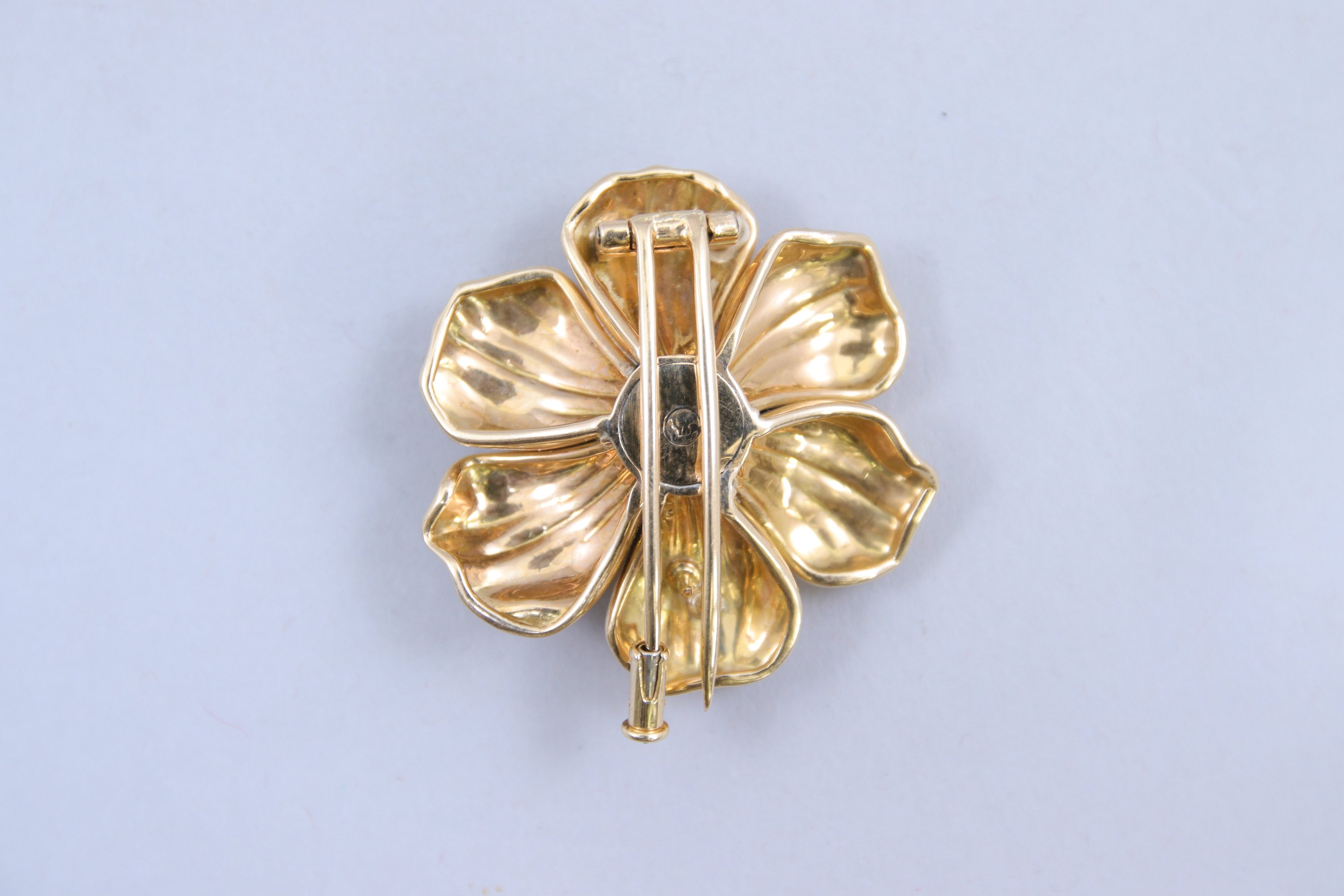 en or jaune 750 millièmes, en forme de fleurs à six pétales et le centre orné de 12 saphirs bleus (env. 0,10 ct) ?.