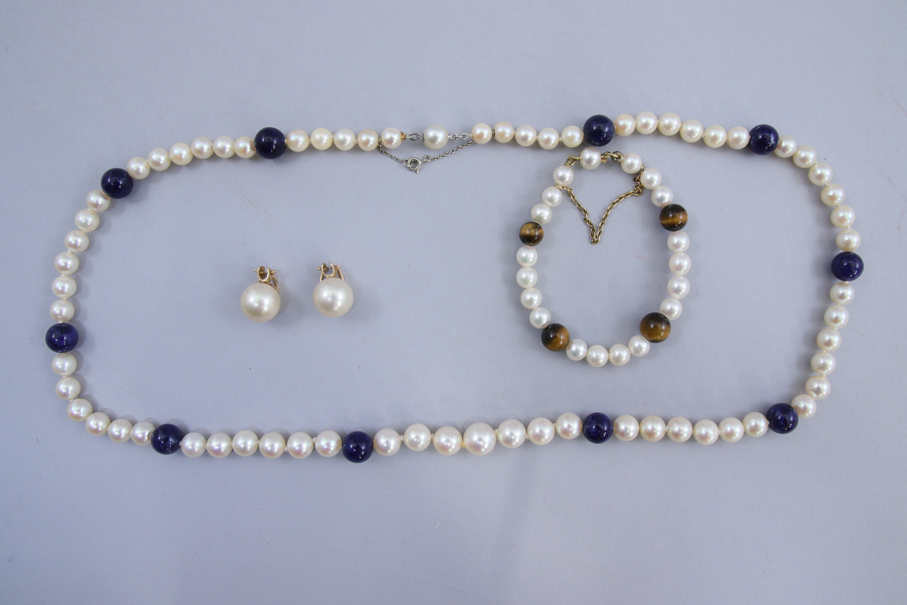 ornés de perles de culture ou perles d'imitation et de boules en quartz il-de-tigre, sodalites ou composition.