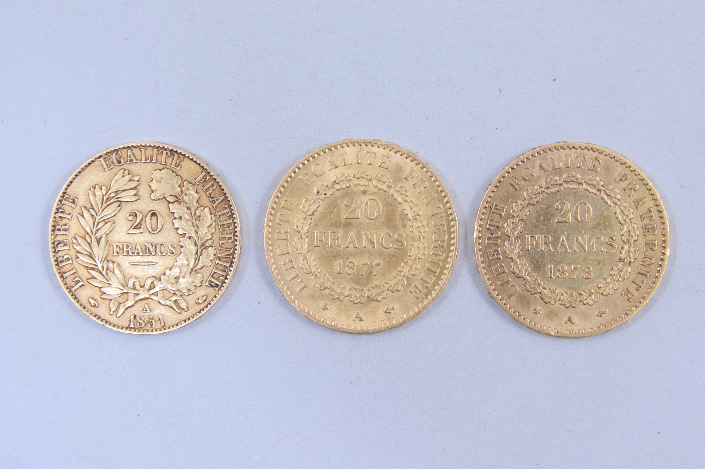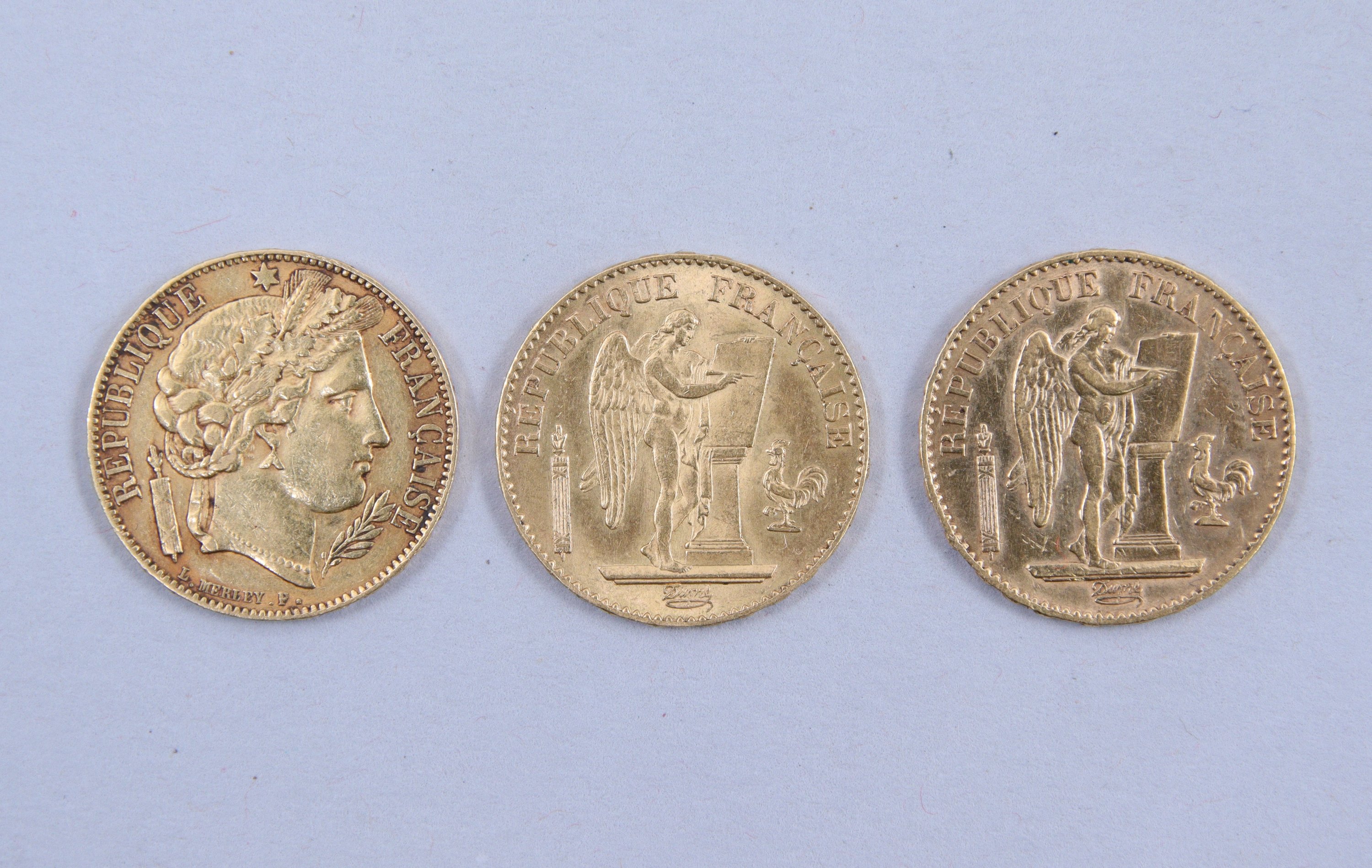 FRANCE. 3 PIÈCES de 20 FRANCS OR :