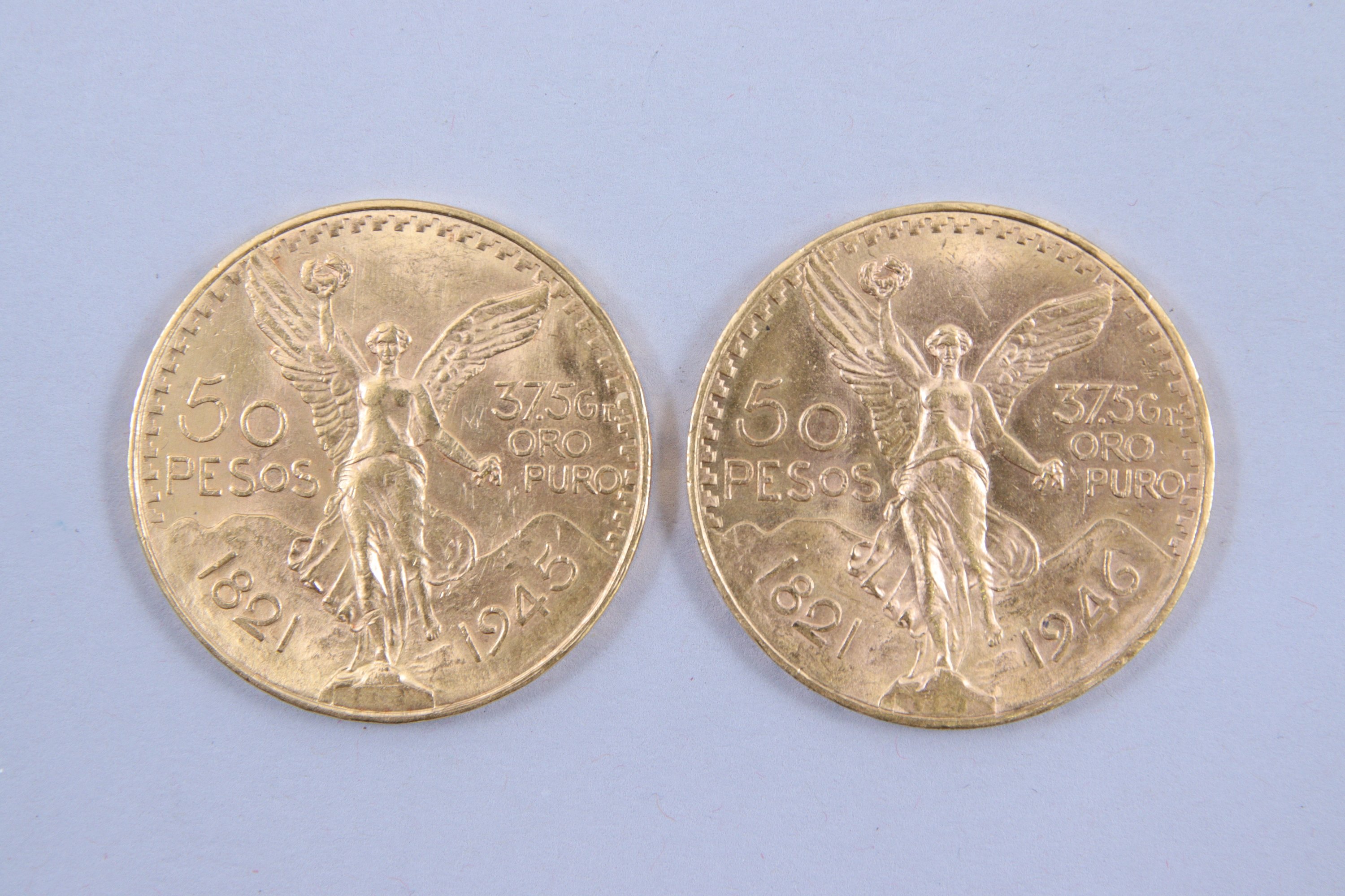 MEXIQUE. 2 PIÈCES de 50 PESOS OR, 1945 et 1946.