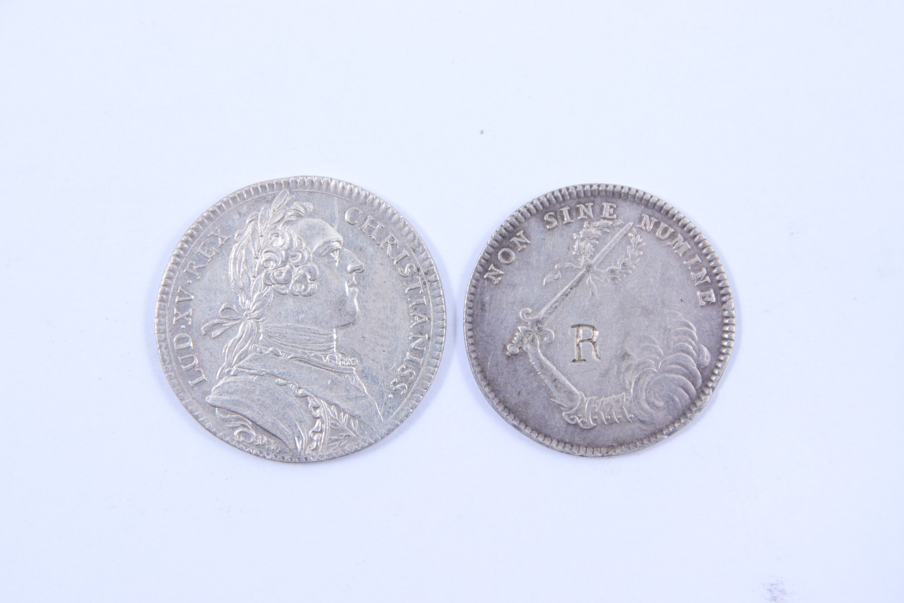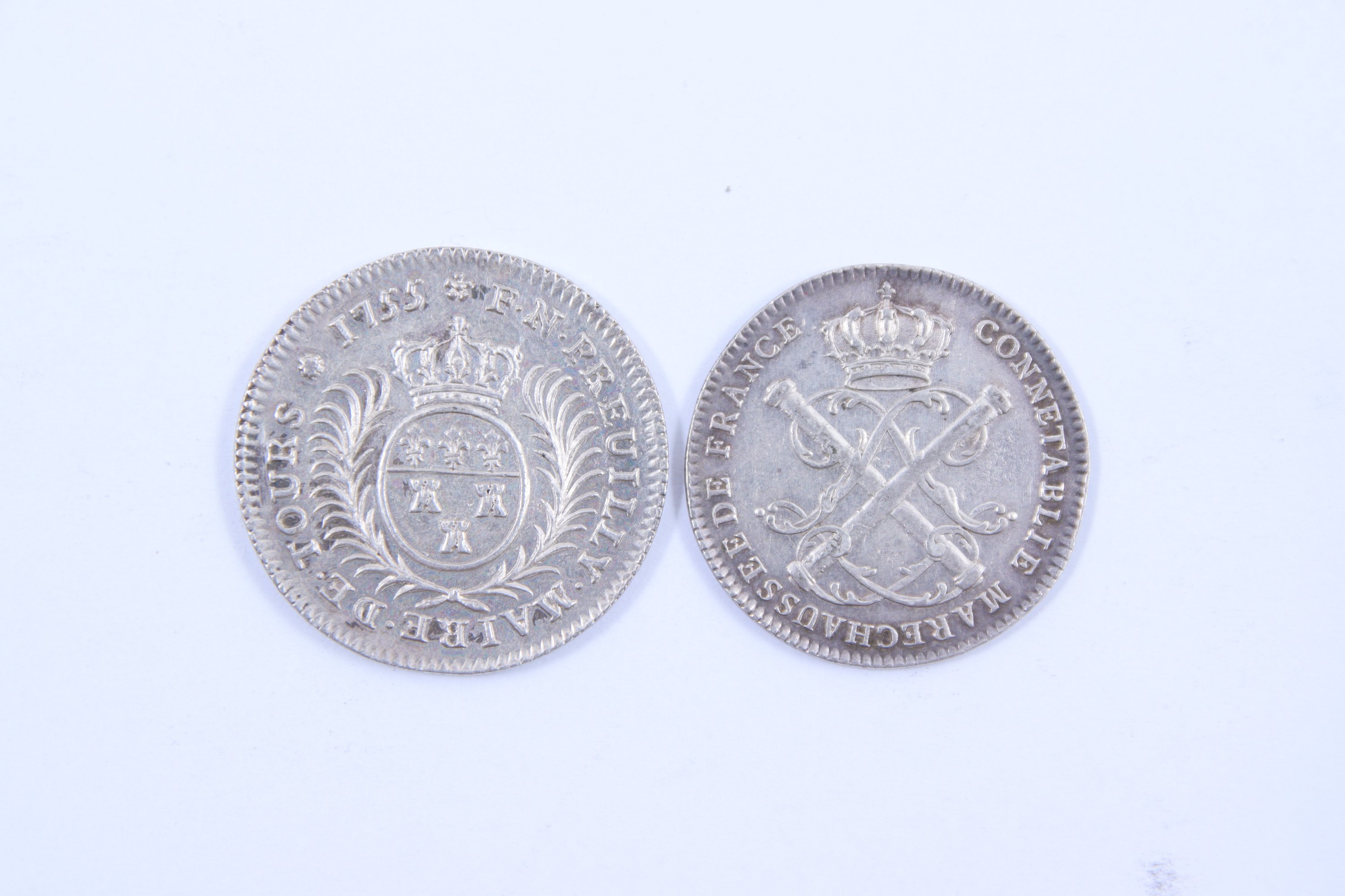 Joint : deux jetons en argent, F.N. Preuilly Maire de Tours 1755 et Connétablie Maréchaussée de France (non daté).