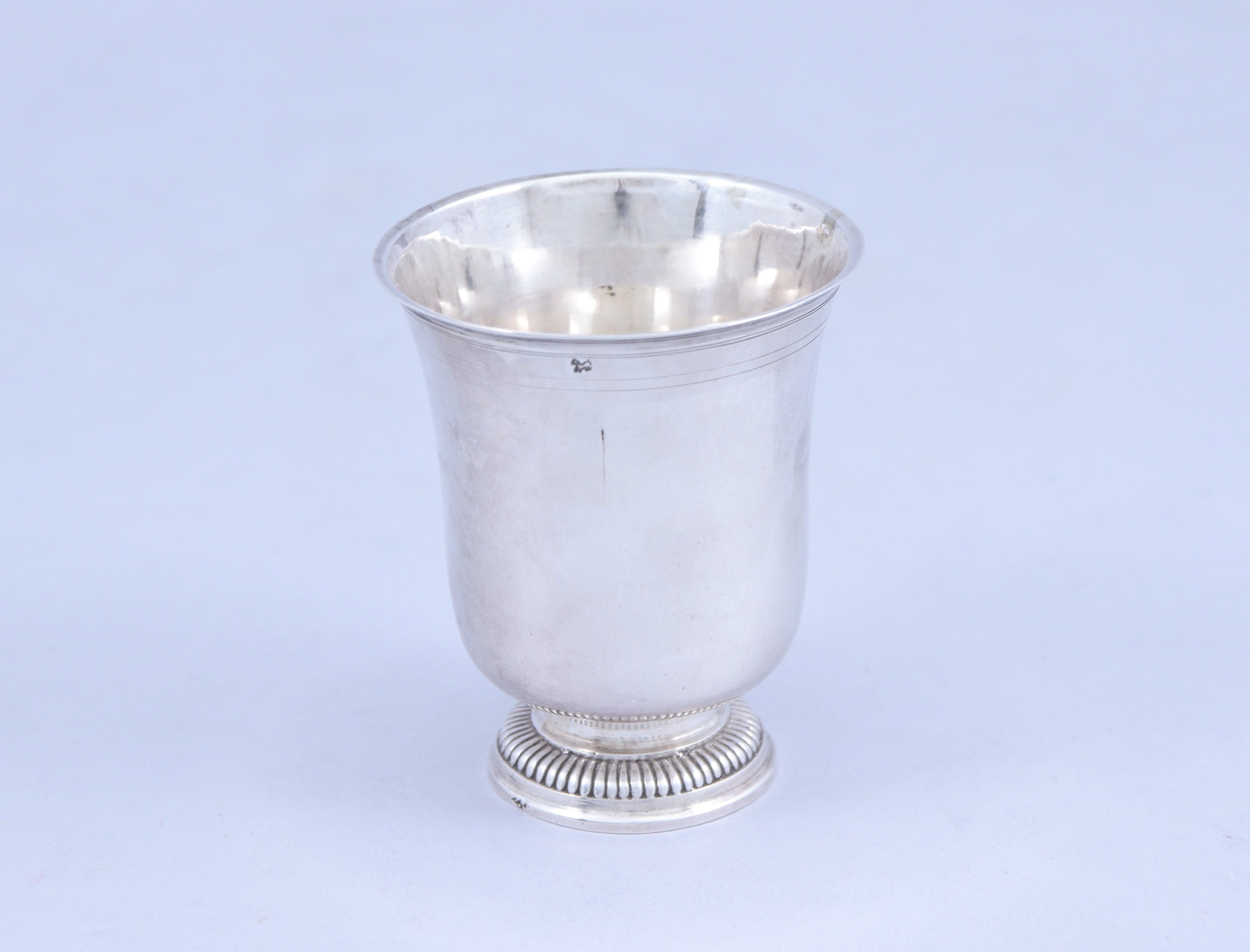 en argent. Piétement circulaire à frise de godrons. La panse gravée d'armes sous une couronne de marquis.