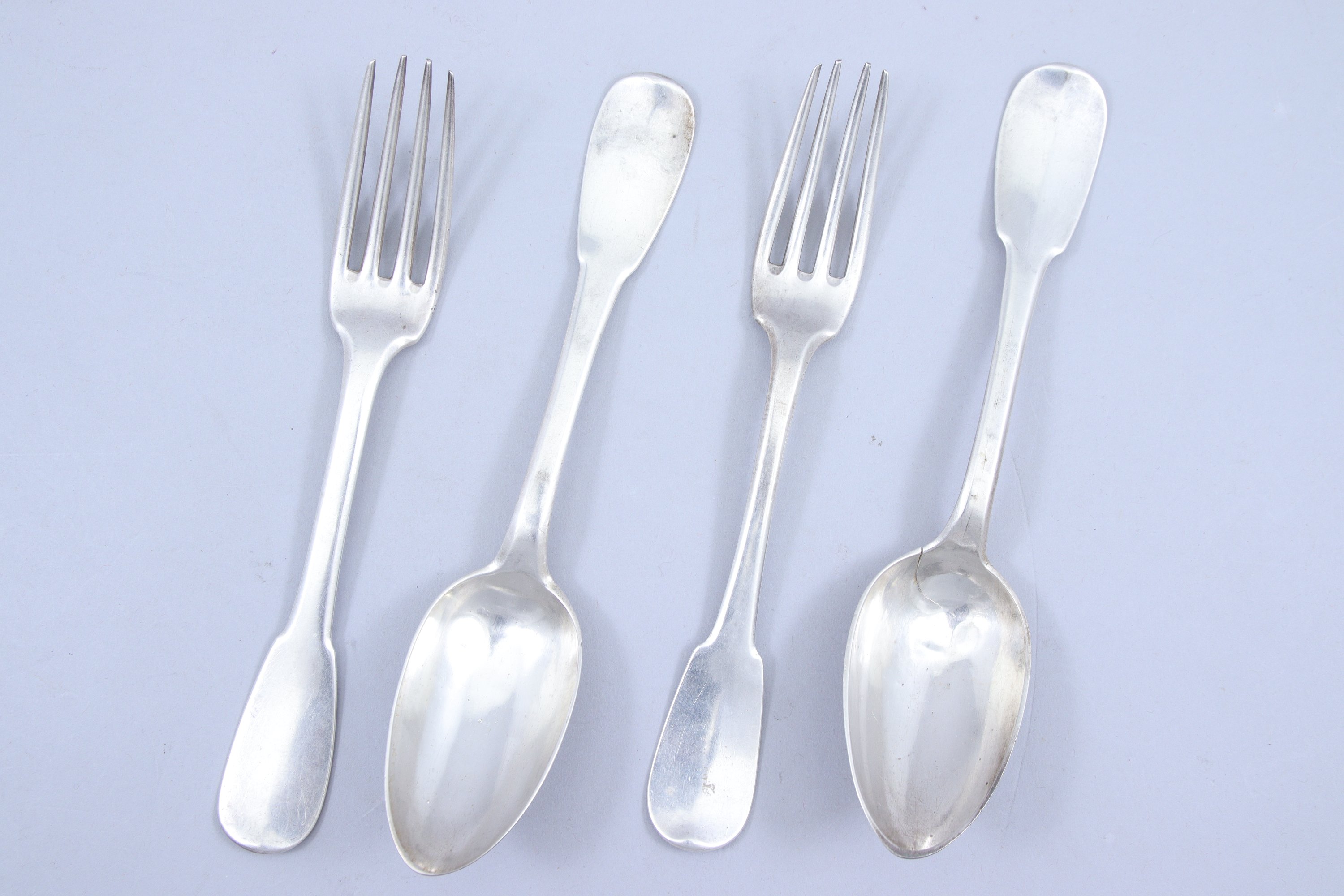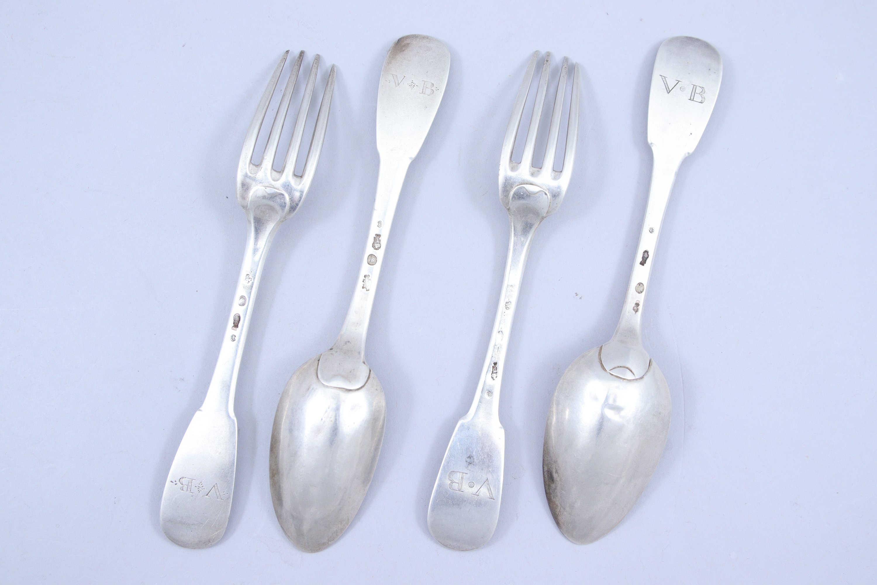 Joint : Deux cuillers à café modèle filet, monogrammés IR et LV, poinçons des Fermiers Généraux, poids 65,23 g.