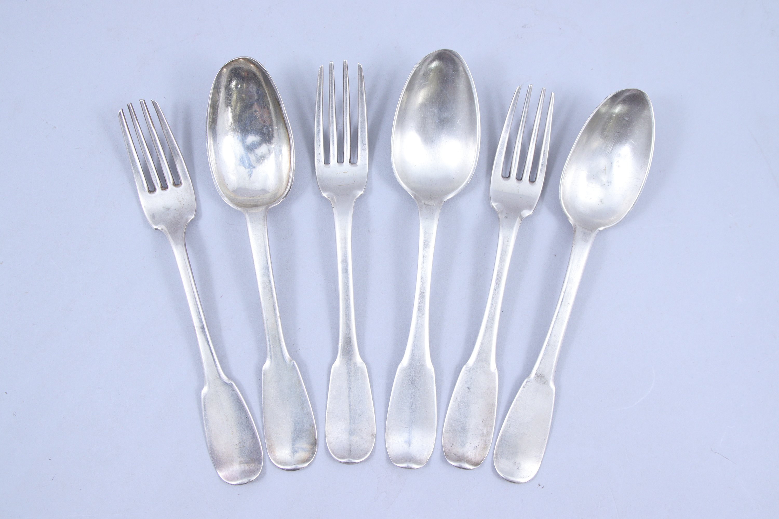 en argent, modèle uniplat, une fourchette et une cuiller monogrammées.