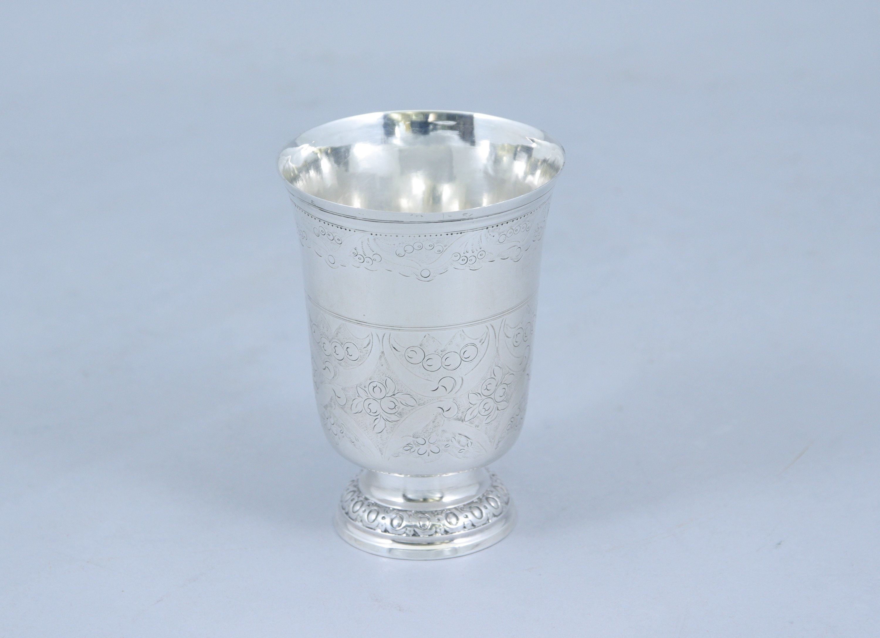 Joint : une timbale tulipe en argent. Poinçon Minerve. Poids : 120 gr.