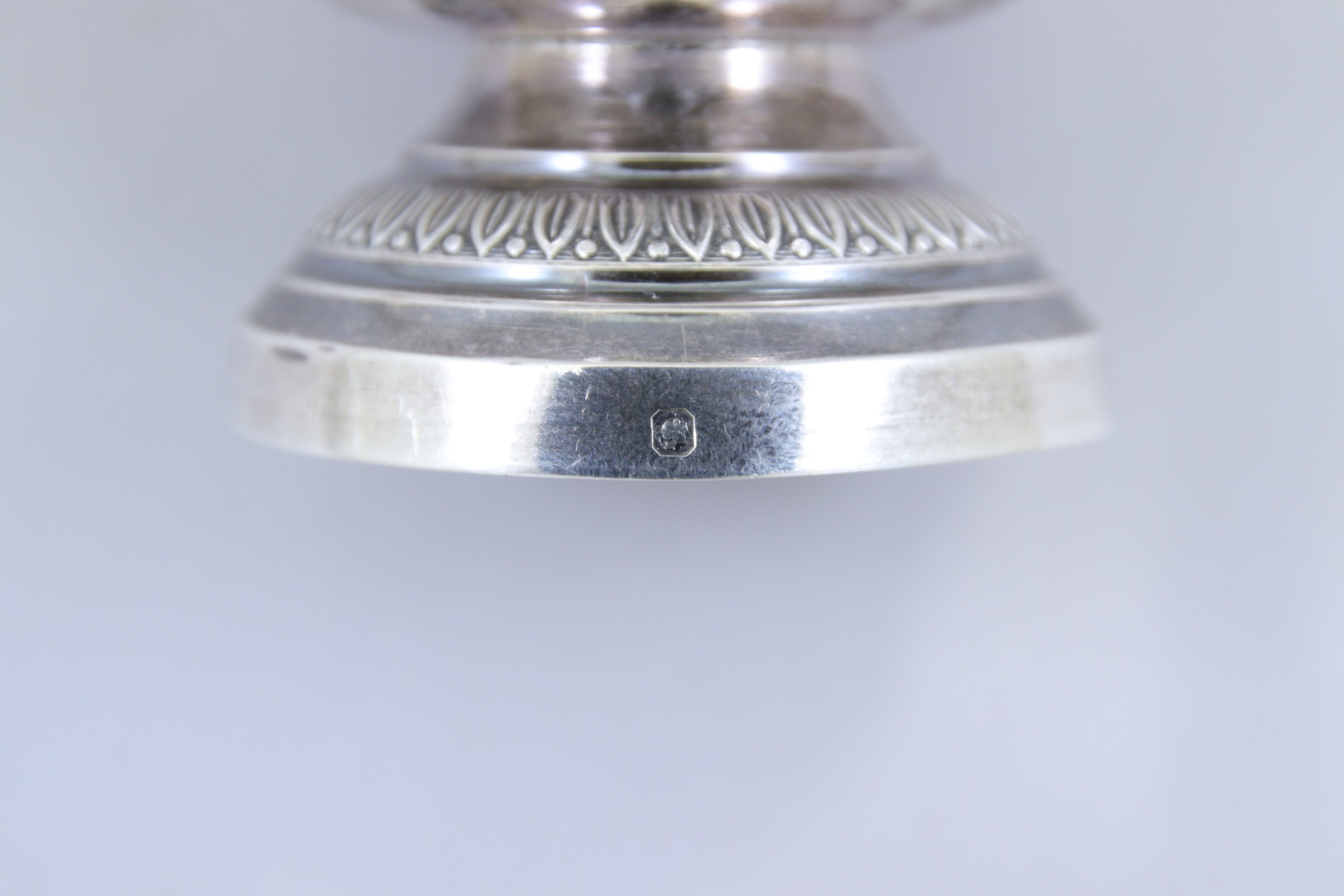 en argent, gravée de guirlandes et de fleurs, le pied avec une frise d'ove.