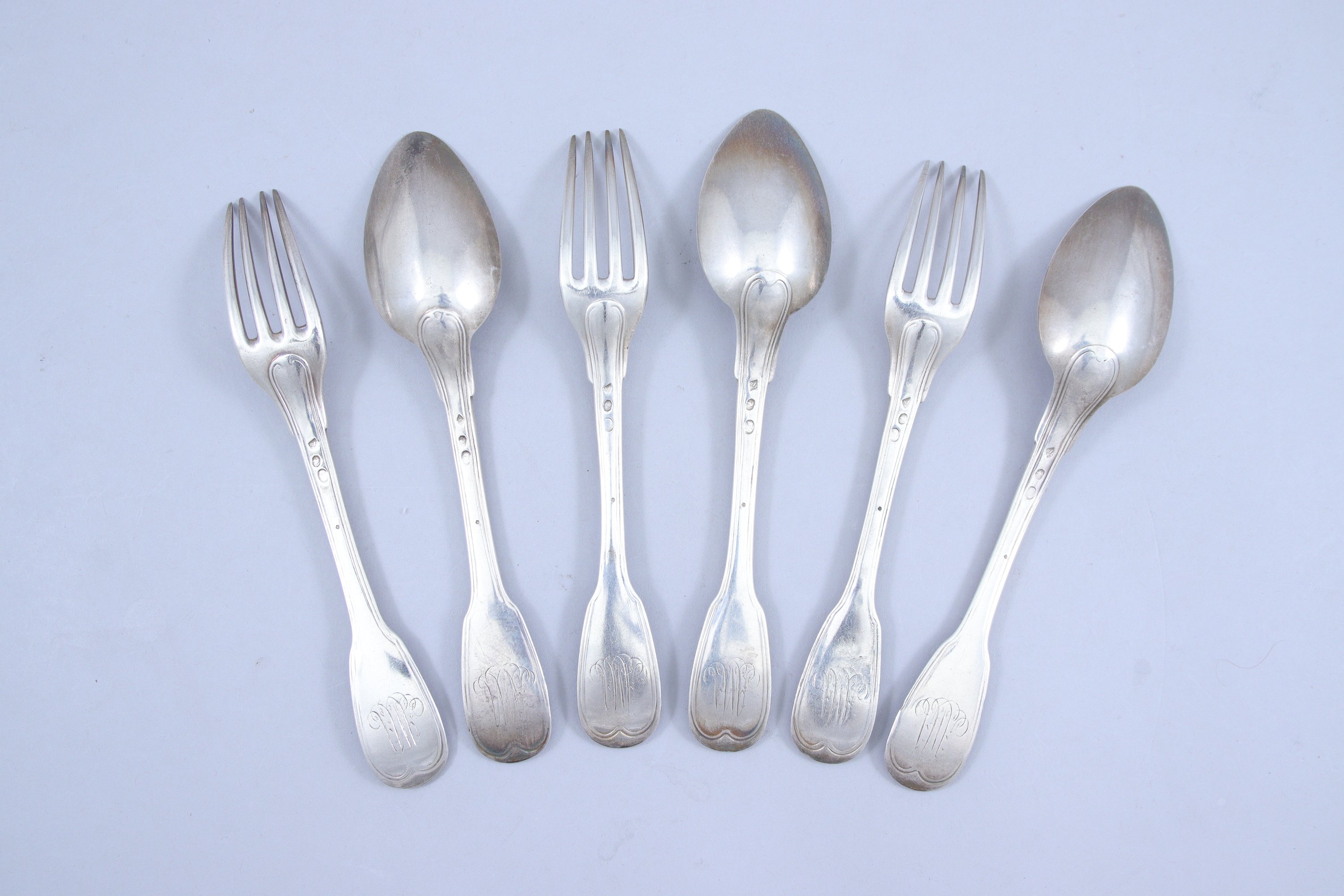 en argent, modèle filet, monogrammés "MM".