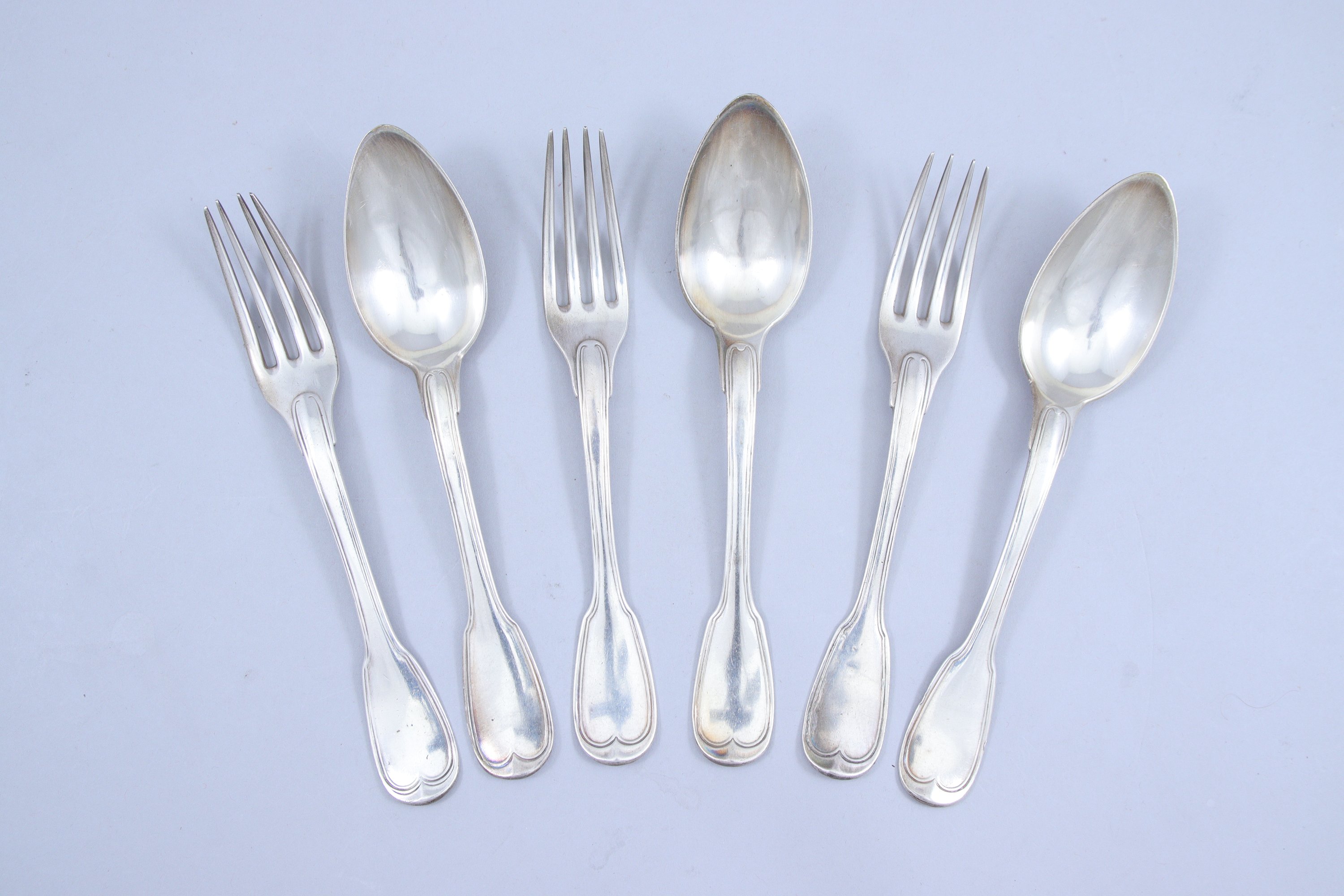 Joint : un couvert en argent, modèle filet, monogrammé "TN". 1er coq Paris, grosse garantie. Orfèvre LAD. Poids 176 g.