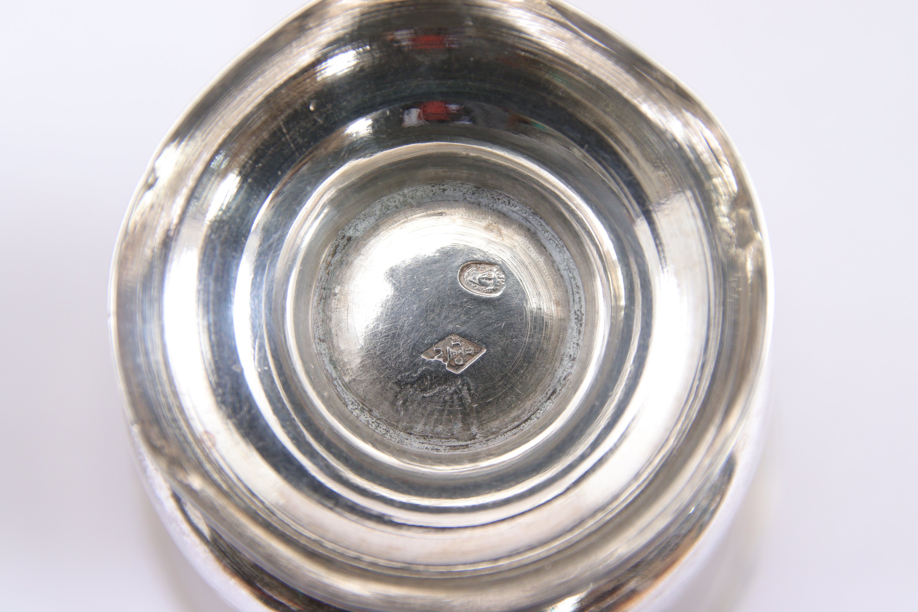 en argent. La lèvre évasée, le corps à décor gravé de bouquets de fleurs entourant des médaillons ornés de bouquets. Elle repose sur un piédouche. Monogrammée "AD".