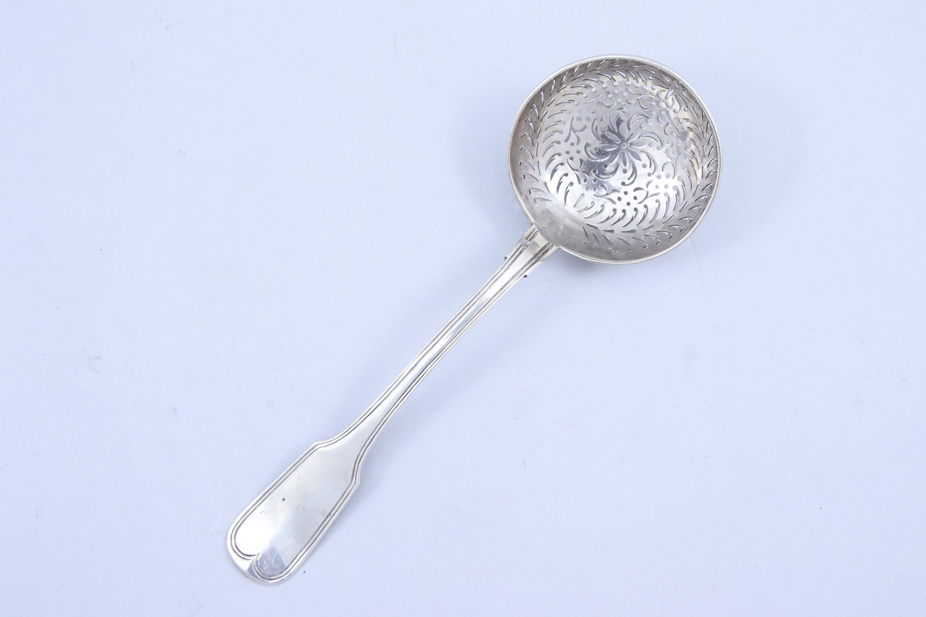 en argent, modèle filet contour aux armes des La Verteville. Le cuilleron repercé de fleurs et feuillages.