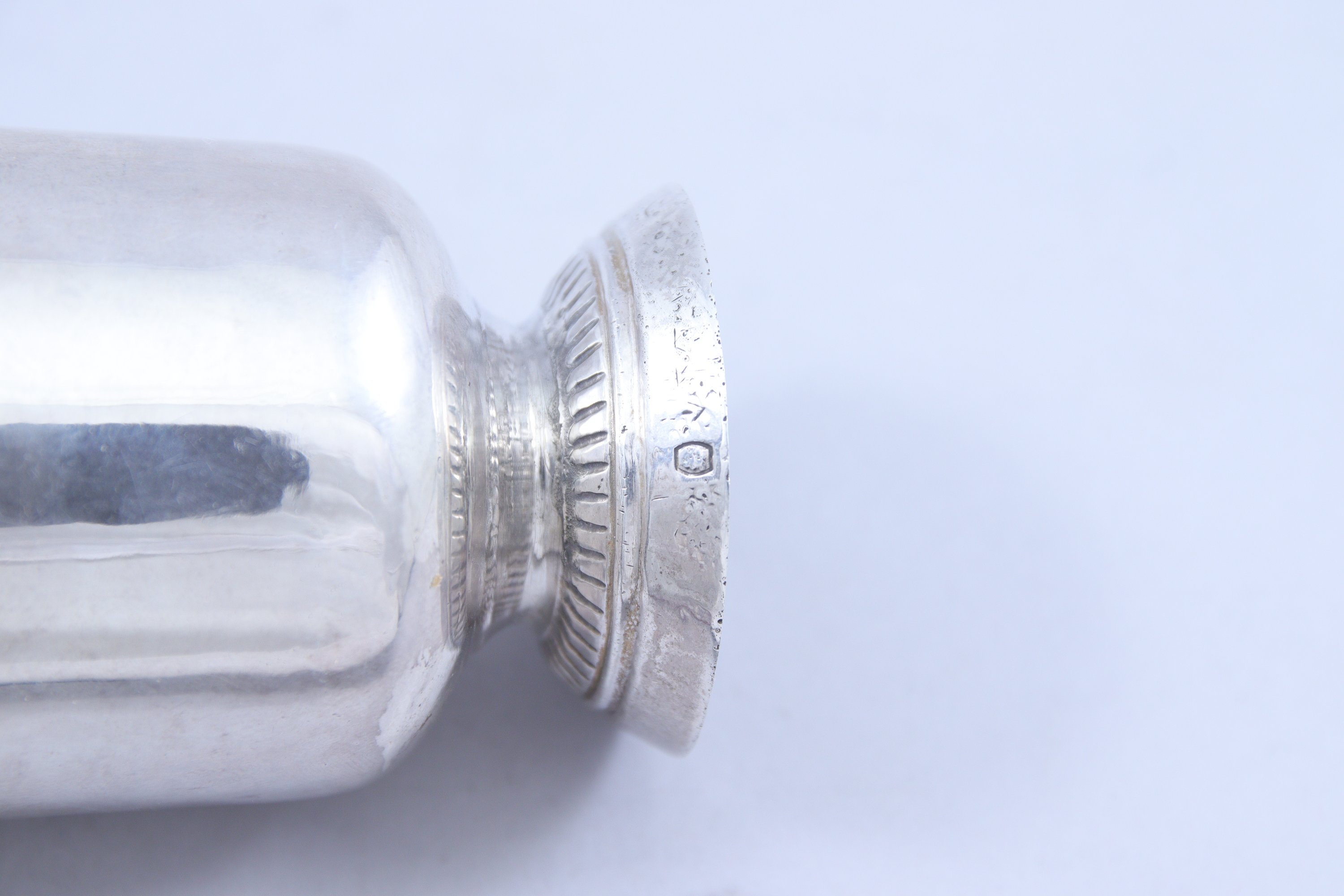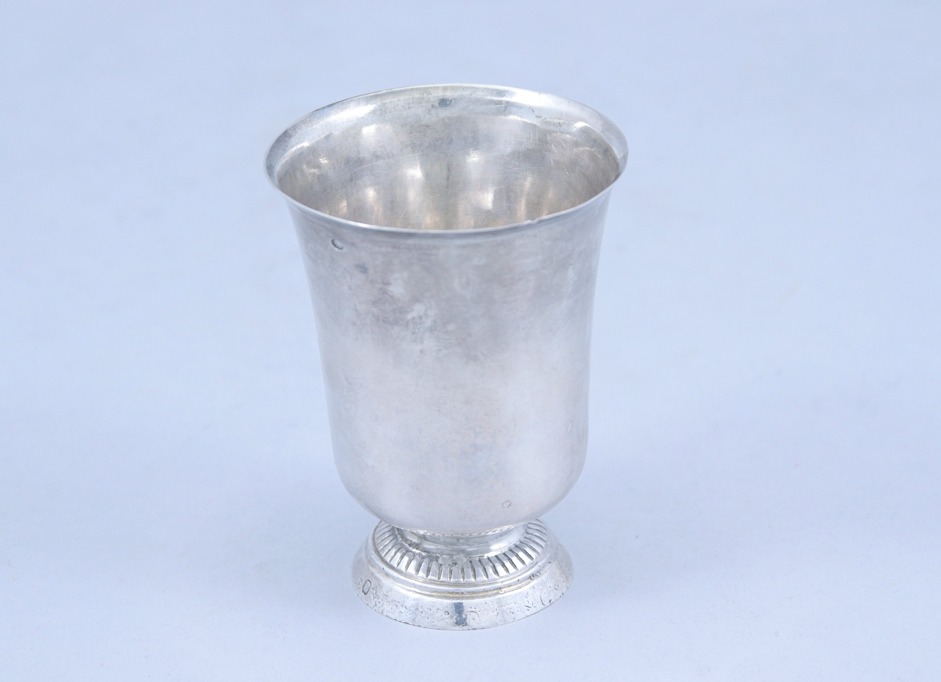 en argent. Le piétement circulaire à motifs godronnés souligné par un filet.