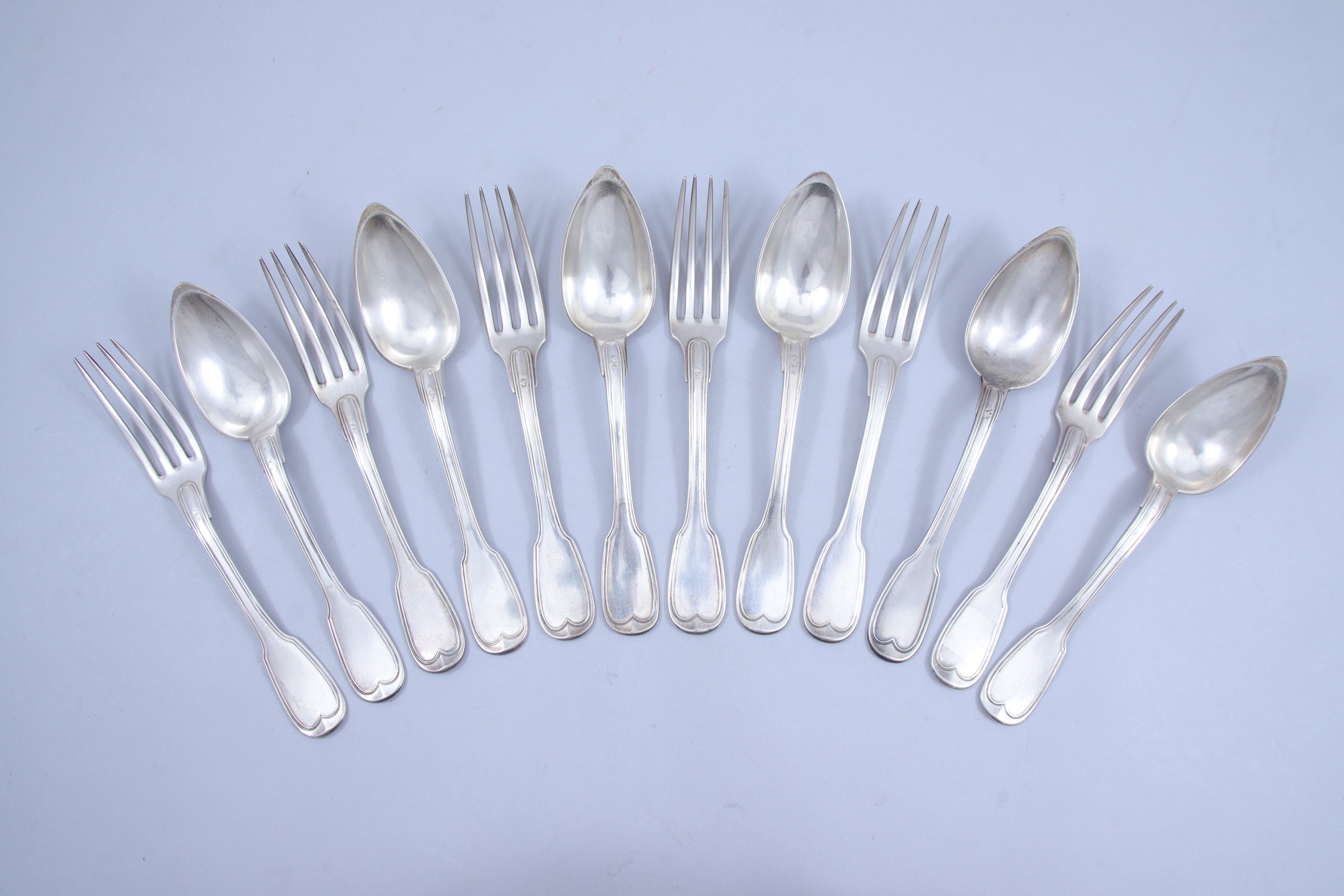 en argent, modèle filet contour, monogrammés "KB".