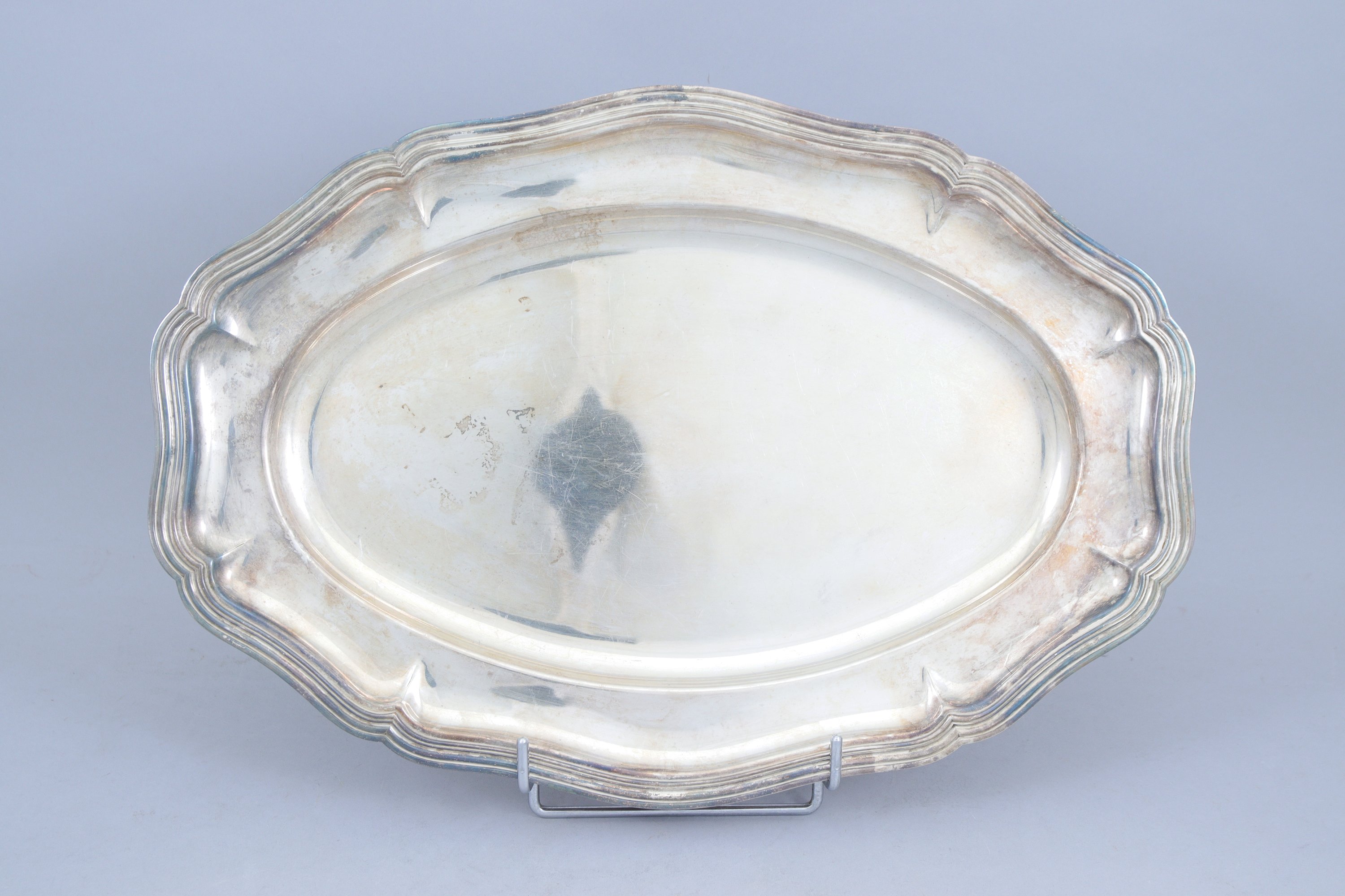 en argent de forme oblong, modèle à filets contours, l'aile chantournée.