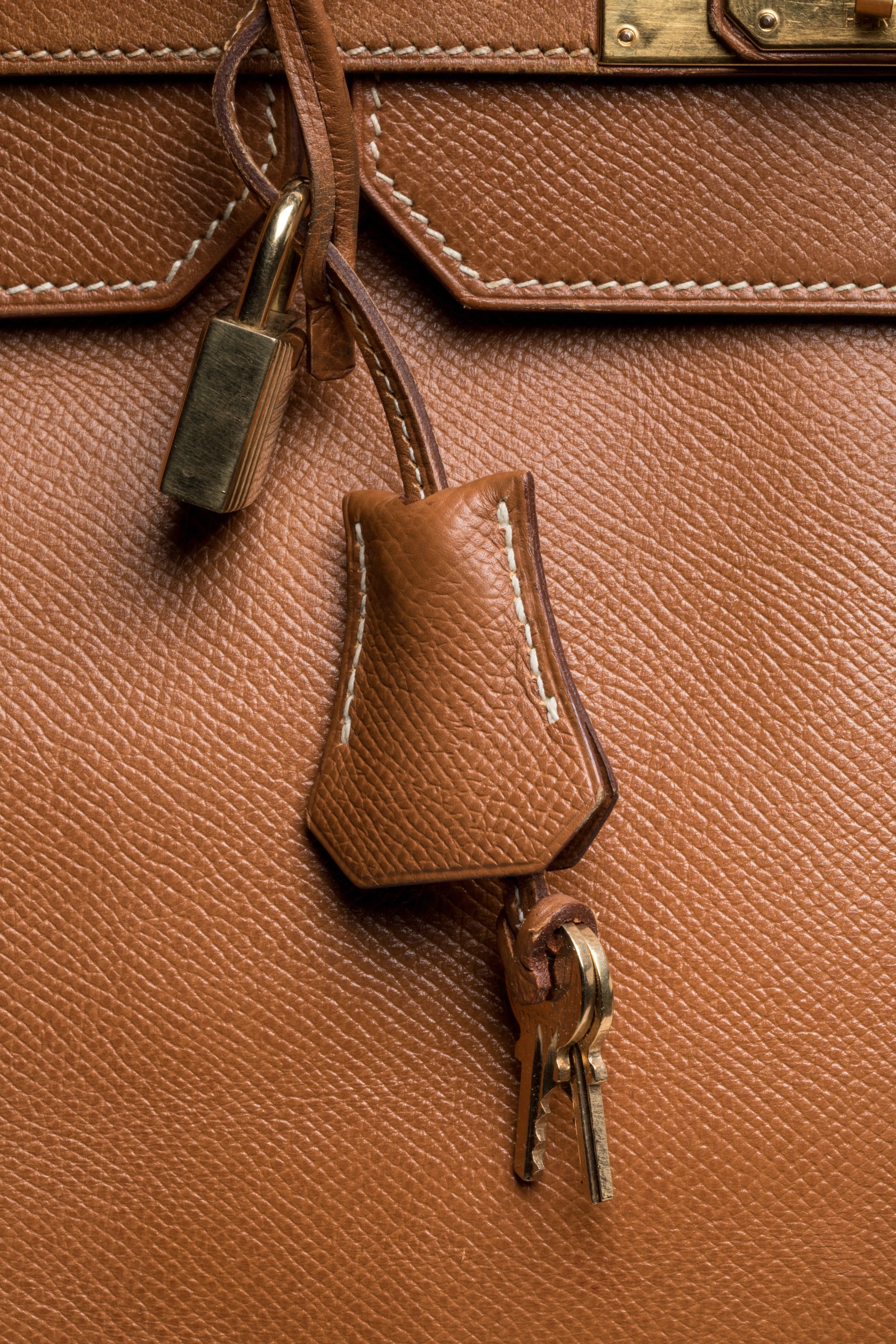 Dans un état proche du neuf, ce sac est "bien sûr complet de son cadenas et de sa clochette, qui contient comme il se doit ses clés. Incontestablement, le modèle est l’un des plus emblématiques de la marque Hermès, né de la rencontre fortuite entre Jane Birkin et le directeur de l’entreprise, Jean-Louis Dumas, dans un avion reliant Paris à Londres en 1984. Alors jeune mère, l’actrice se plaint auprès de lui qu’elle ne trouve aucun sac assez grand ni adapté à ses besoins. Il dessinera pour elle et avec elle ce révolutionnaire accessoire rectangulaire, souple et spacieux, réservant même un espace « biberon ». Entièrement fabriqué à la main, ce qui demande à un artisan spécialement choisi par la marque environ quarante heures de travail, il se caractérise par une qualité de confection parfaite, parachevée par une pose de finitions selon la technique du « perlage », qui lui assure une longue durée de vie. S’il est iconique par sa place dans l’histoire de la mode, le « Birkin » est également devenu un investissement rentable. Il faut dire qu’il a toujours été fabriqué en éditions limitées, pas plus de douze mille exemplaires par an dans le monde, créant ainsi la demande et la spéculation."