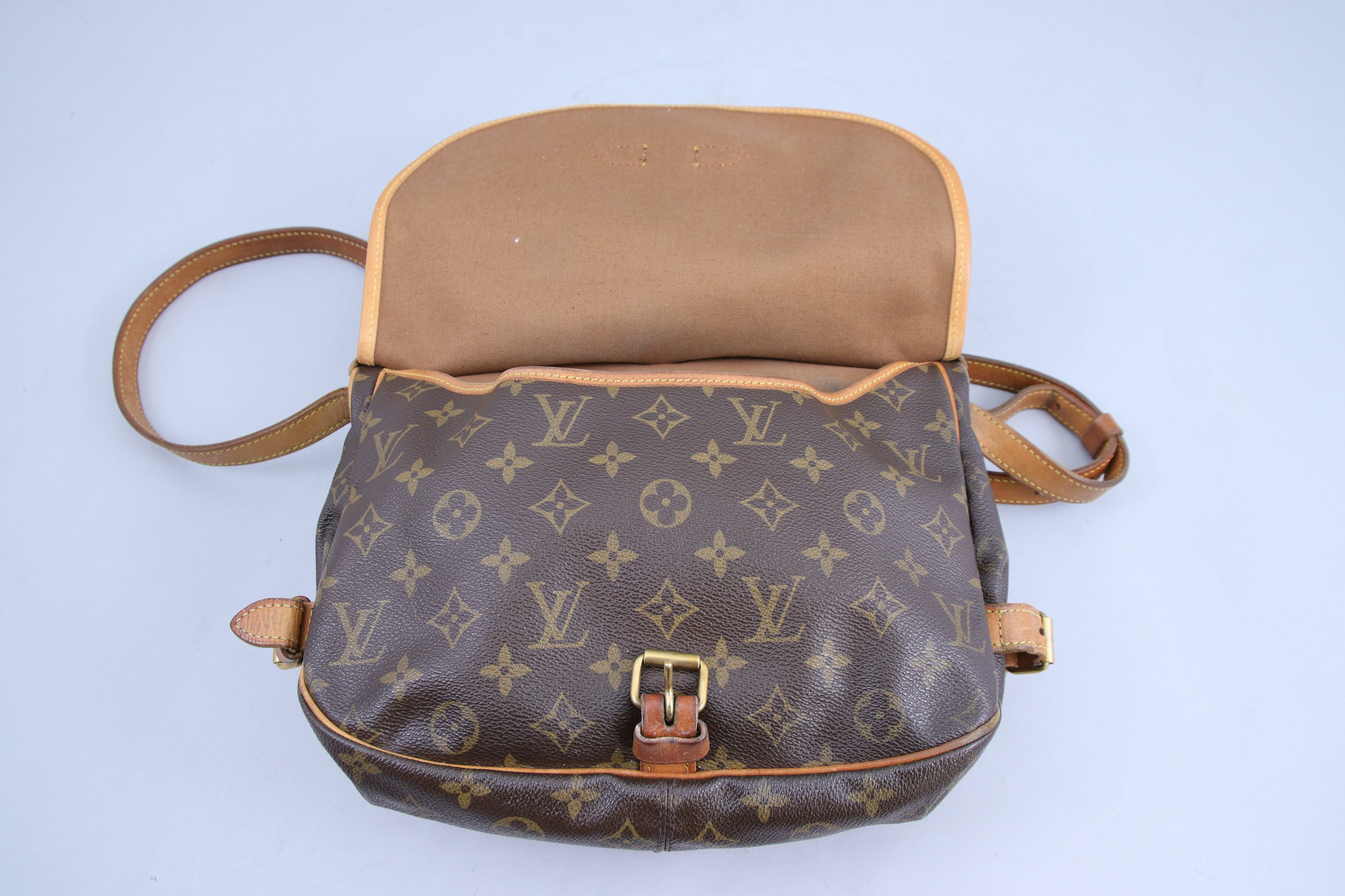 Anse réglable en cuir de coloris camel. Numéroté "873.V.I"