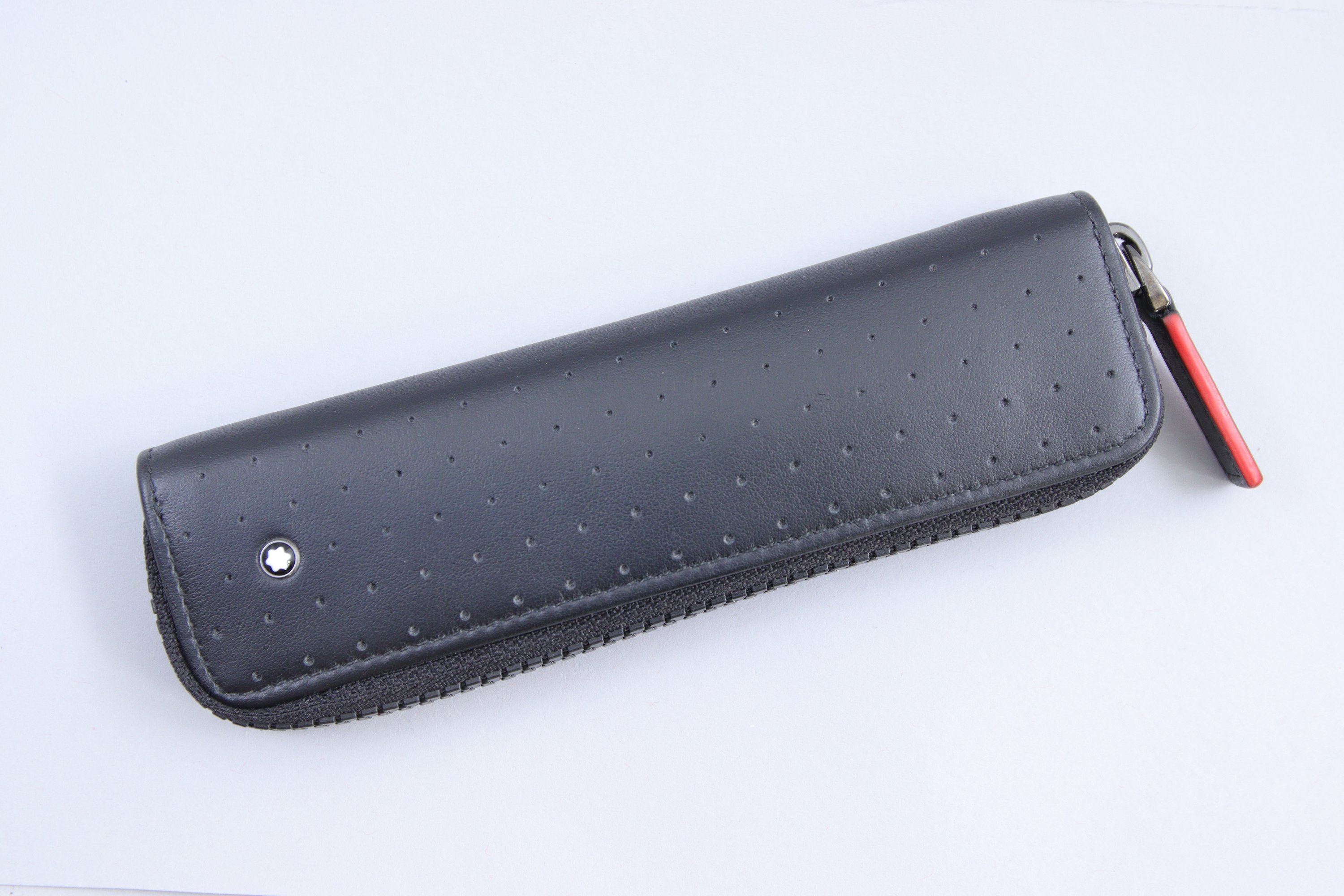 Dans son étui Montblanc Urban Racing Spirit, en cuirs lisse et perforé.
