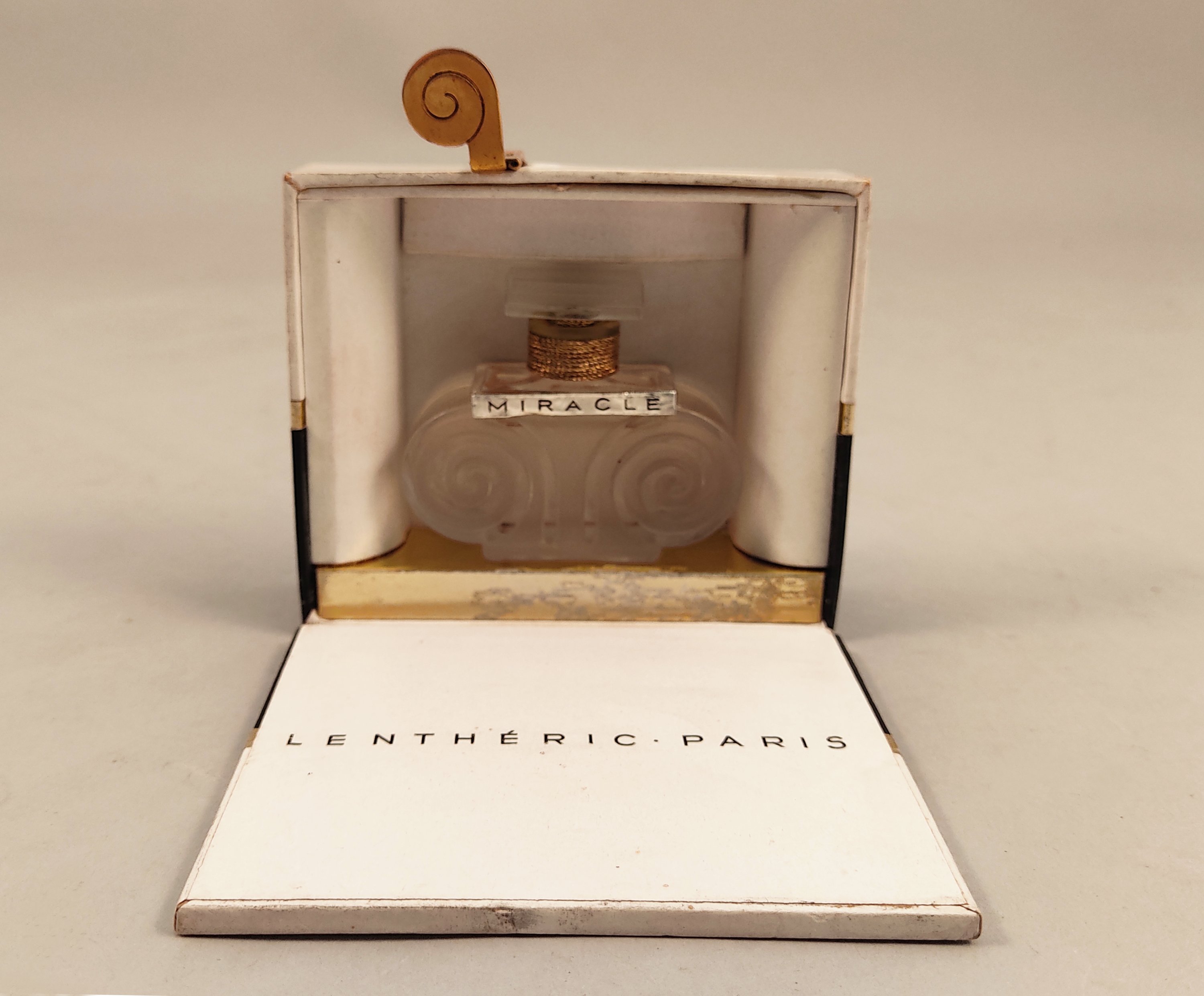 Présenté dans son coffret en carton incolore noir, blanc et or.