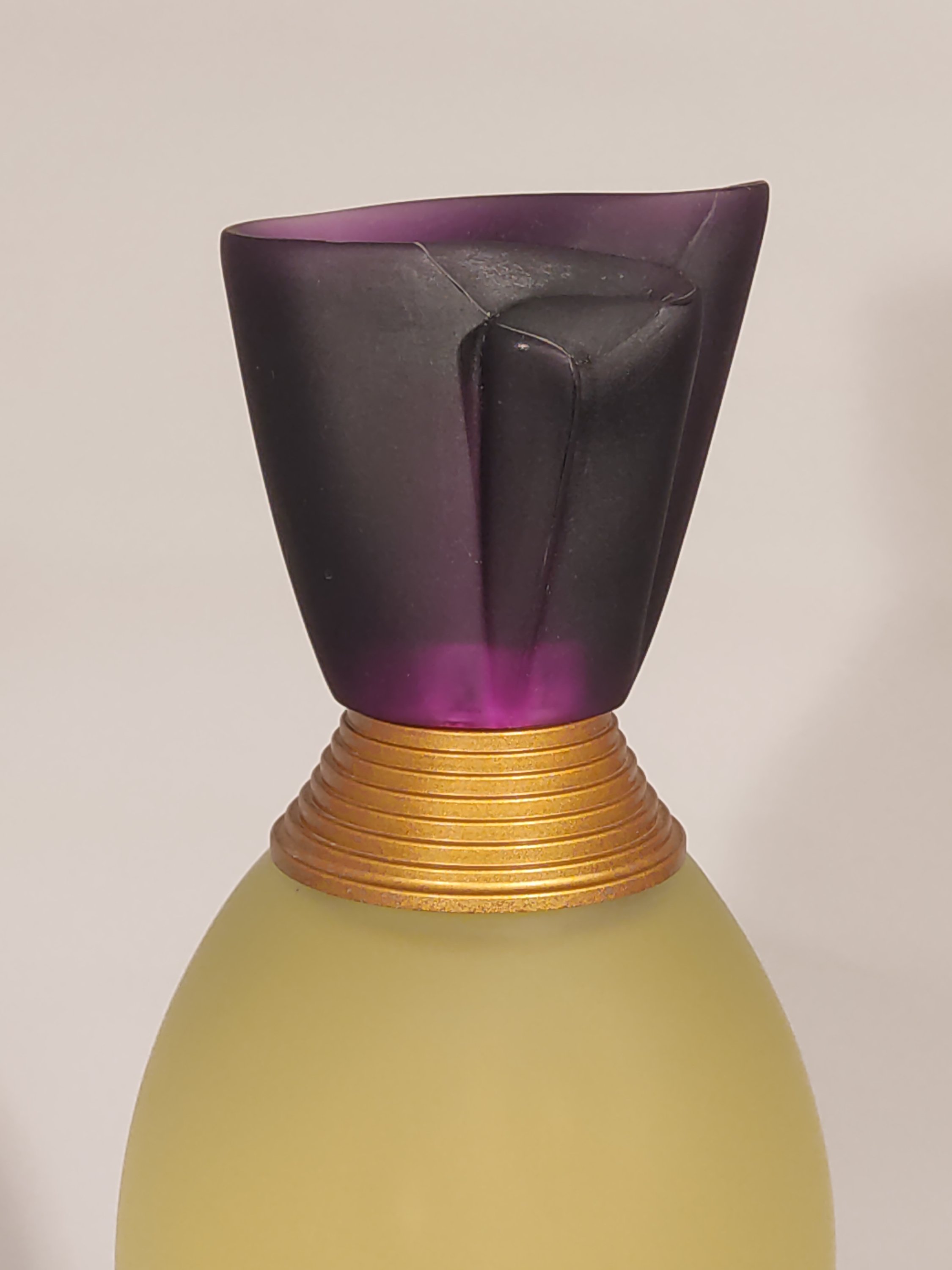 Flacon publicitaire décoratif en verre incolore habillé de Surlyn.