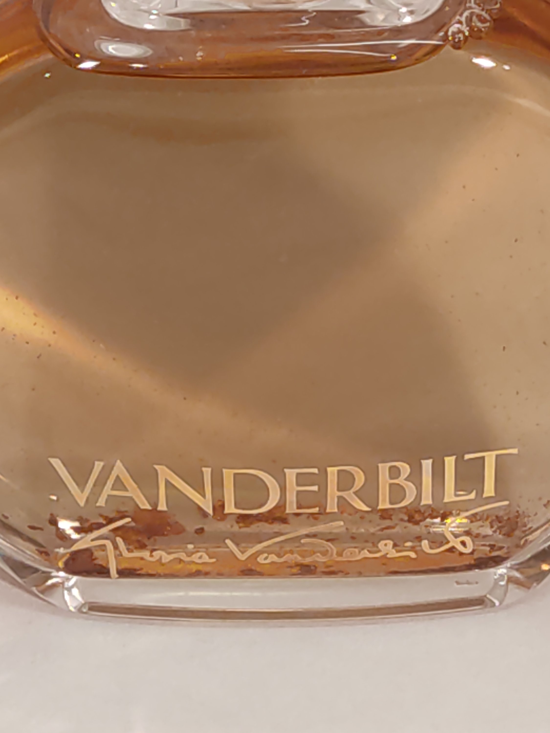 Flacon publicitaire décoratif en verre incolore pressé moulé.