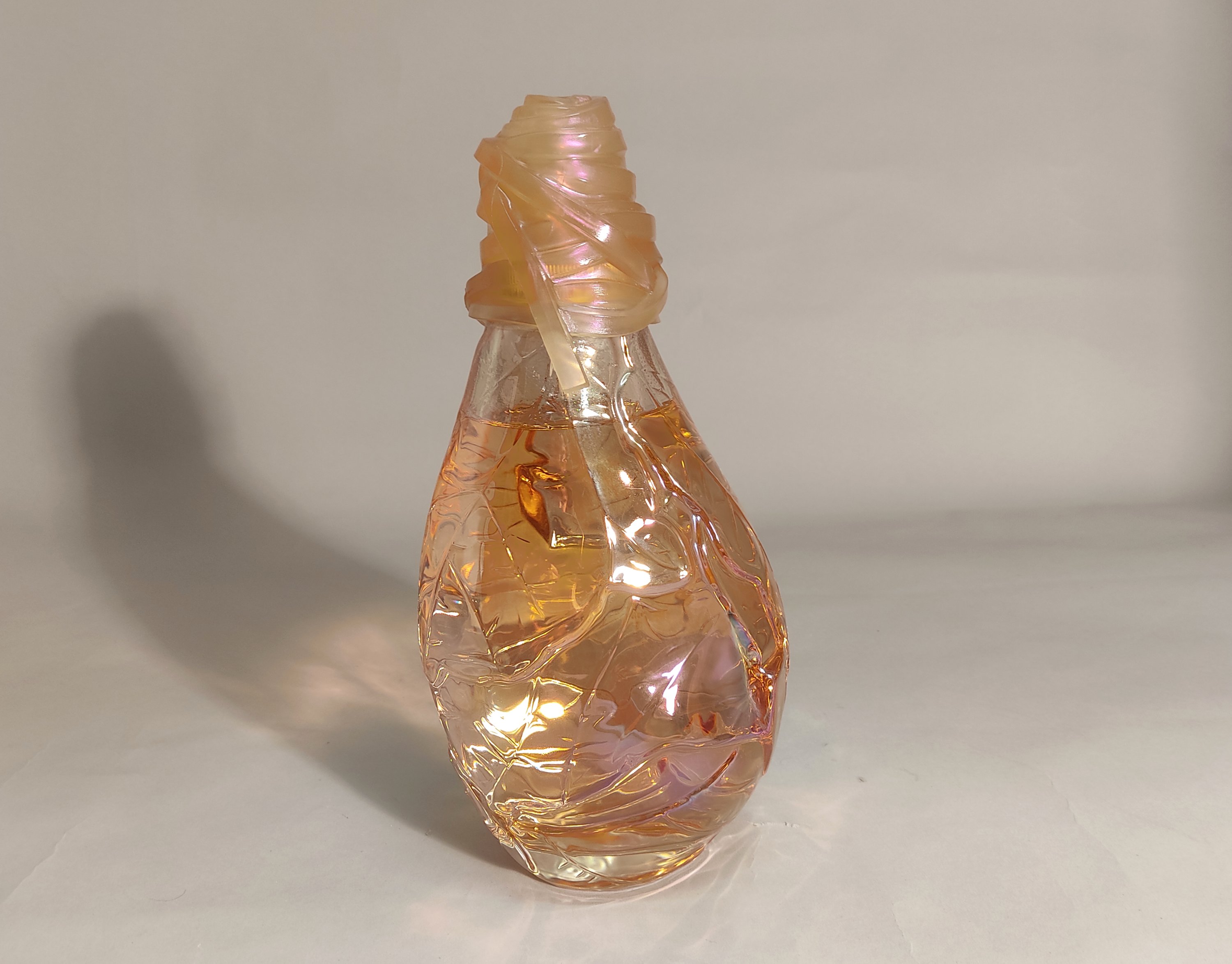 Flacon "gourde pêcheur d'eau" en verre incolore pressé moulé et Surlyn dessiné par Serge Mansau (1930-2019).