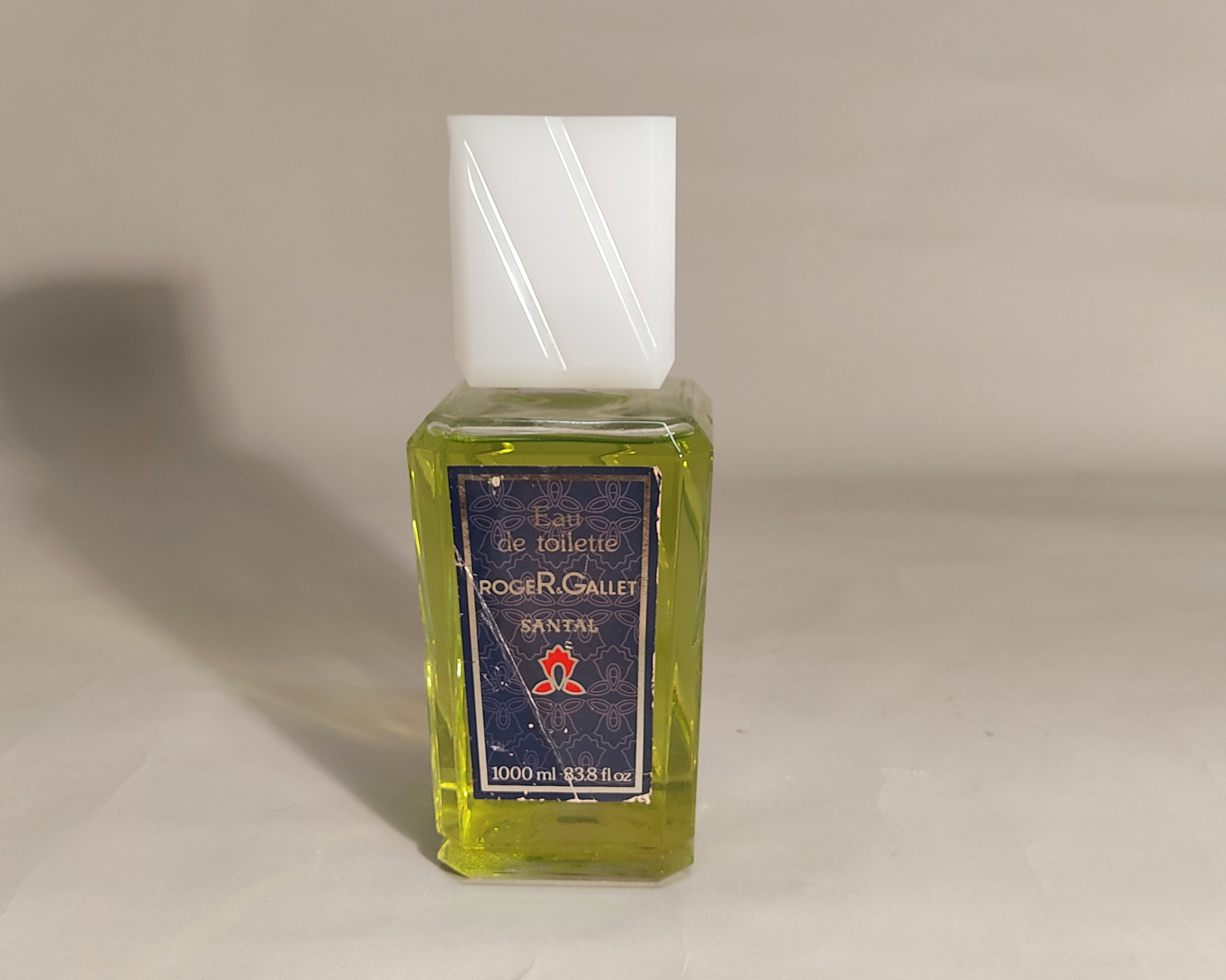 Flacon publicitaire en verre incolore pressé moulé avec capsule en résine moulée et son étiquette polychrome (défraîchie).