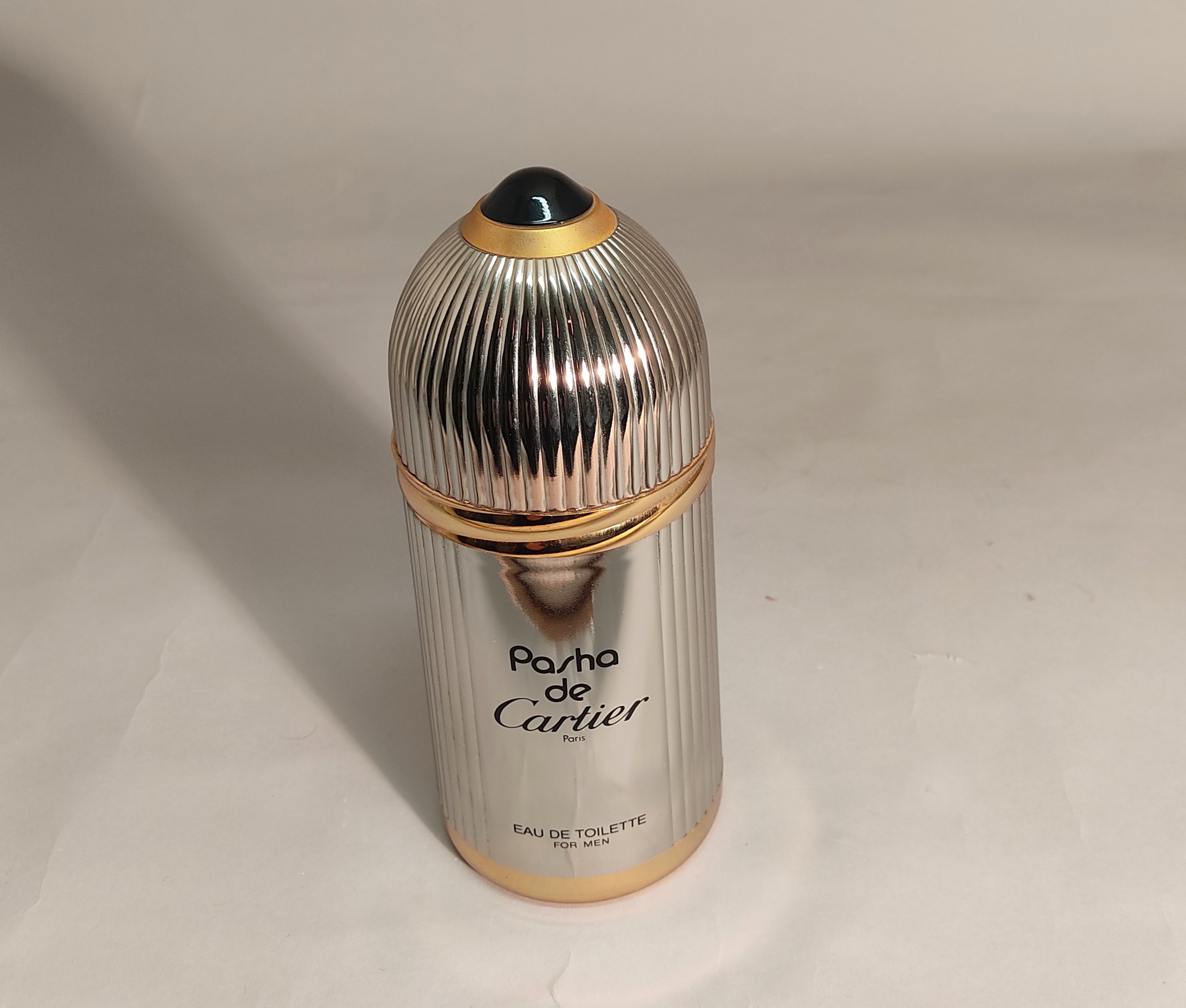 Flacon publicitaire décoratif en zamak argent et Surlyn, titré.
