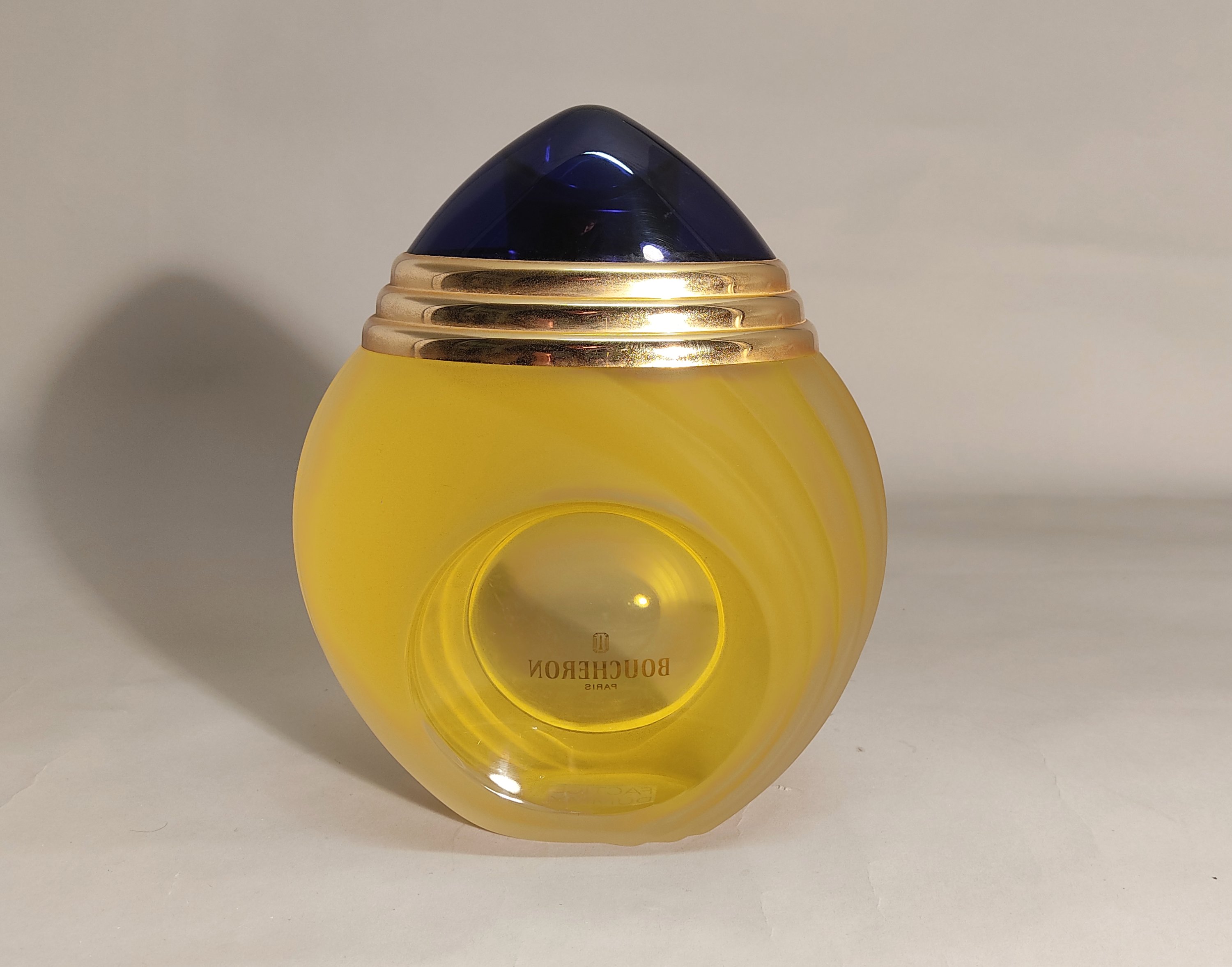 Flacon publicitaire en verre incolore pressé moulé partiellement dépoli et Surlyn, figurant une bague "pain de sucre", dessiné par Joël Desgrippes.