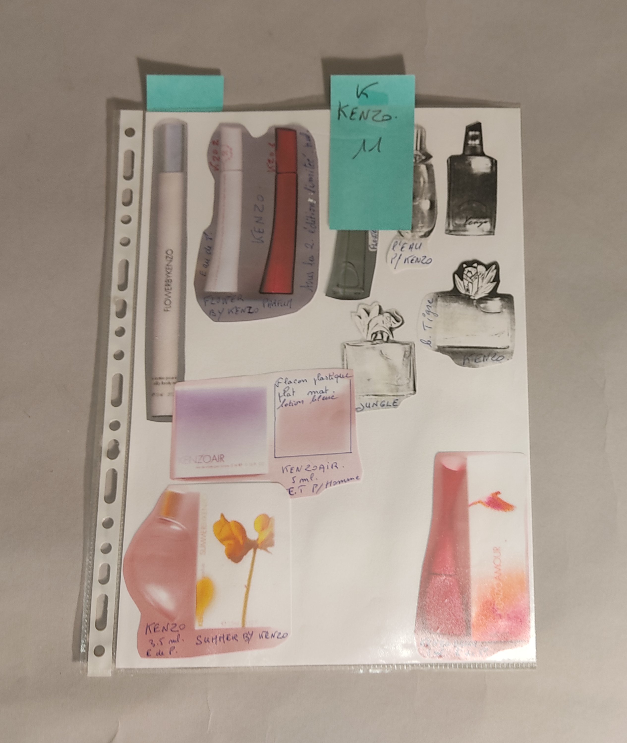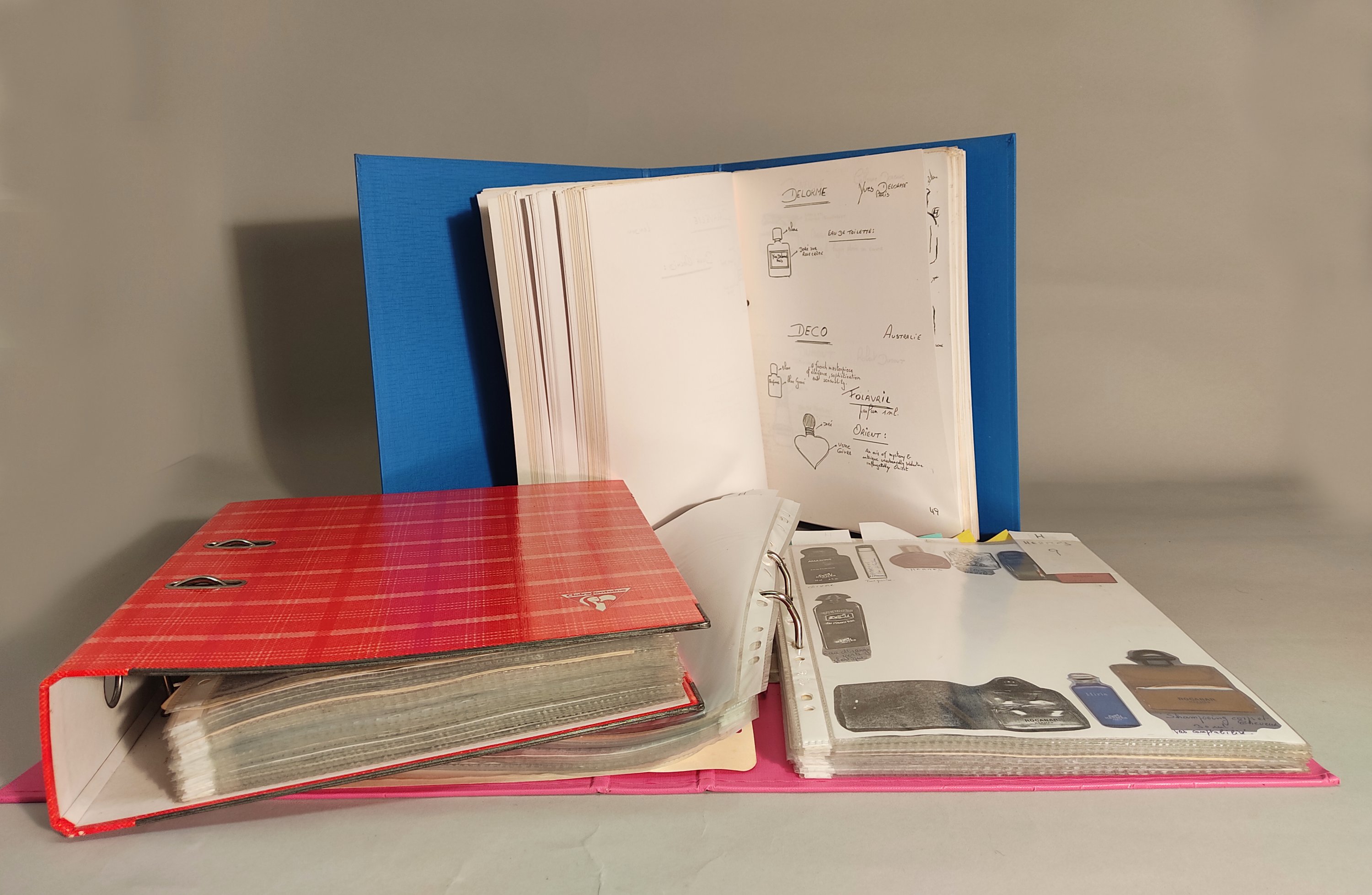Lot comprenant des classeurs répertoriant les diminutifs parfums des différentes marques de parfumerie, quatre répertoires de la cote des échantillons de parfum, le dictionnaire des parfums et l'Abécédaire des Parfums.