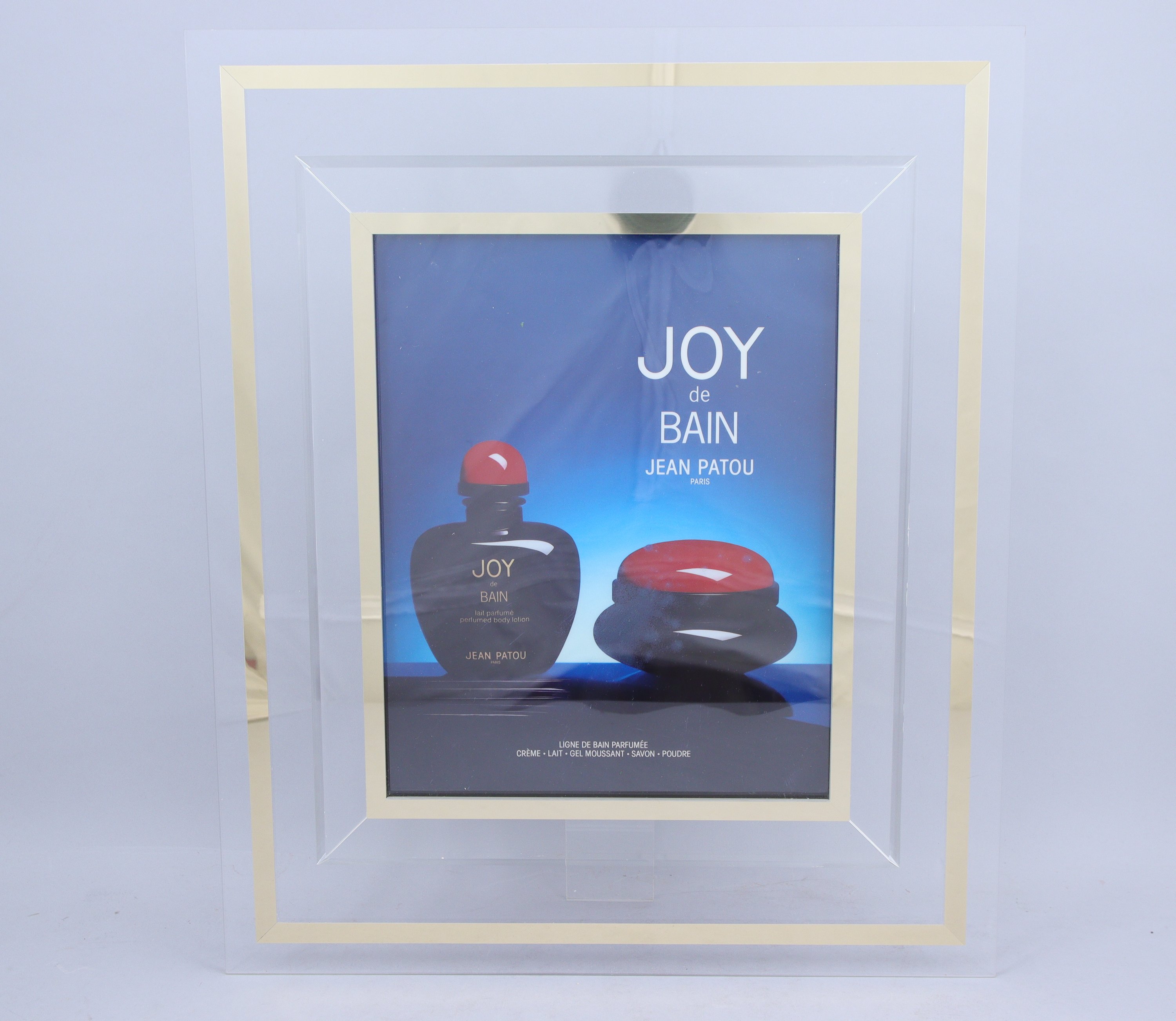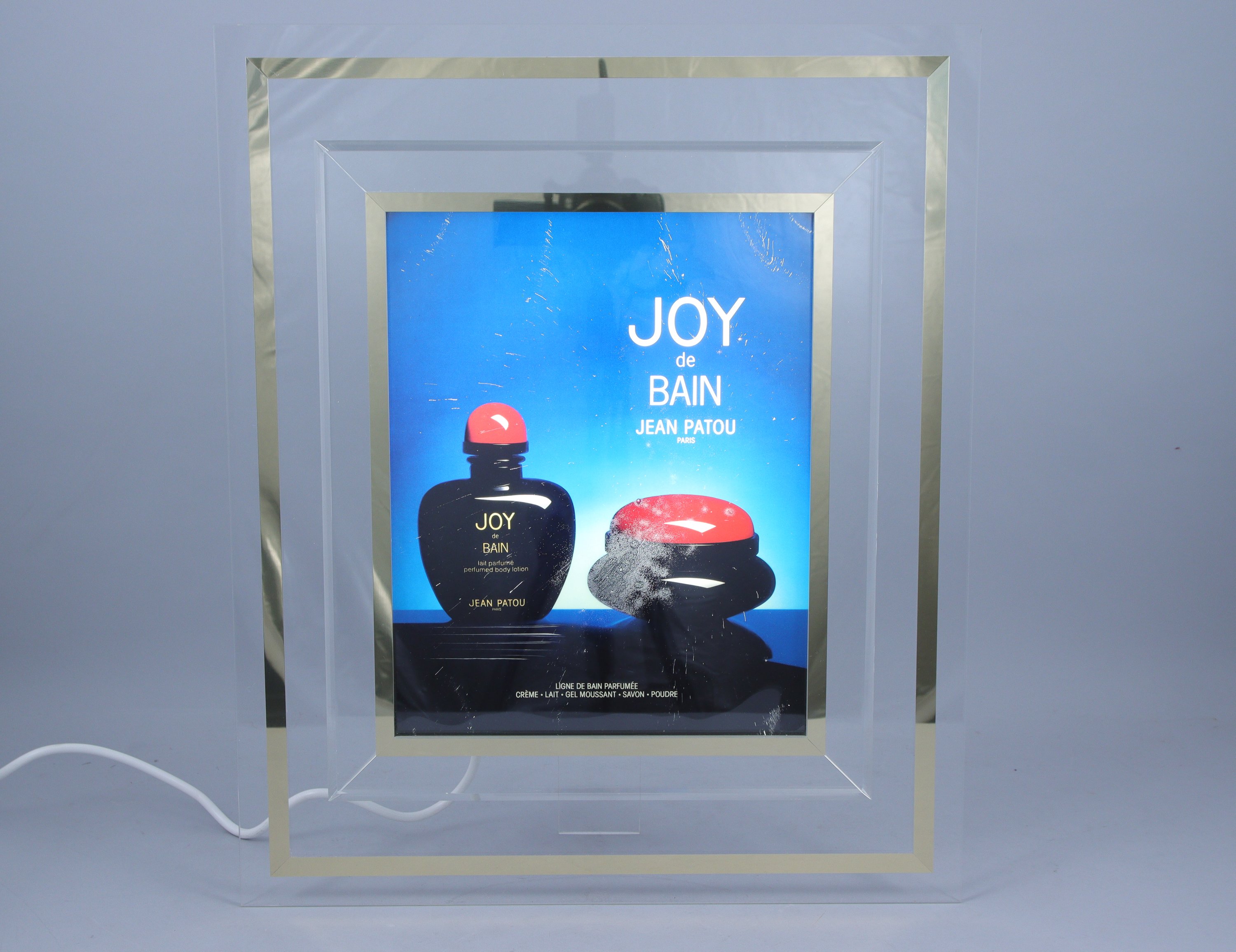 Petit panneau publicitaire électrique pour le parfum "Joy".