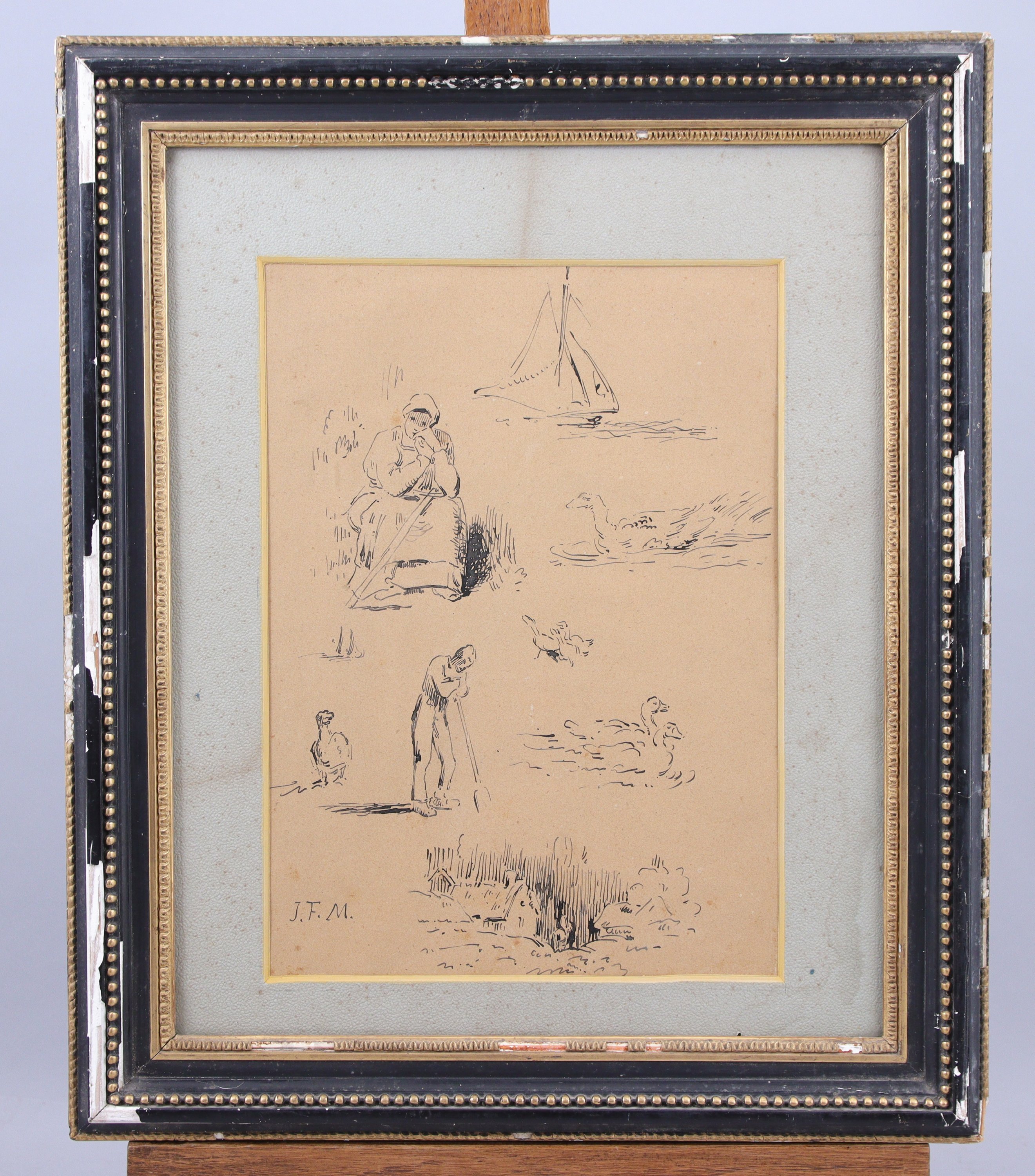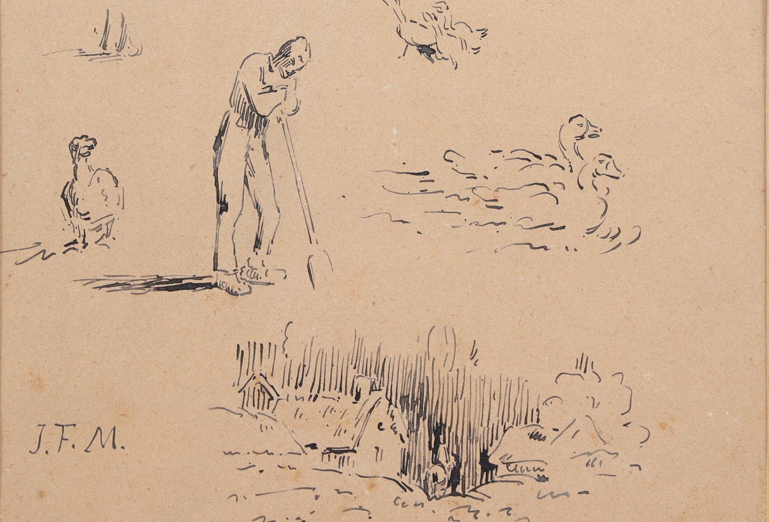 École française du XIXe siècle Étude de paysans et animauxPlume...