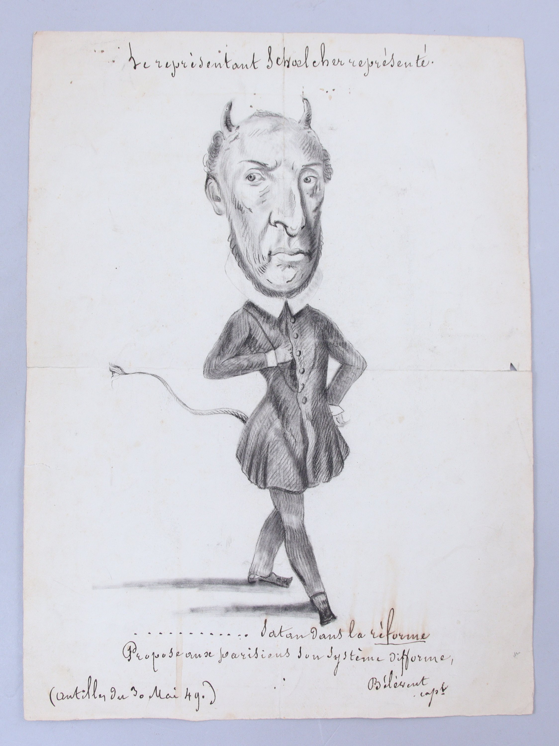 Annoté : "le représentant Schoelcher représenté..... satan dans la réforme propose aux parisiens son système difforme, Bélévent. (antilles du 30 mai 49.)"