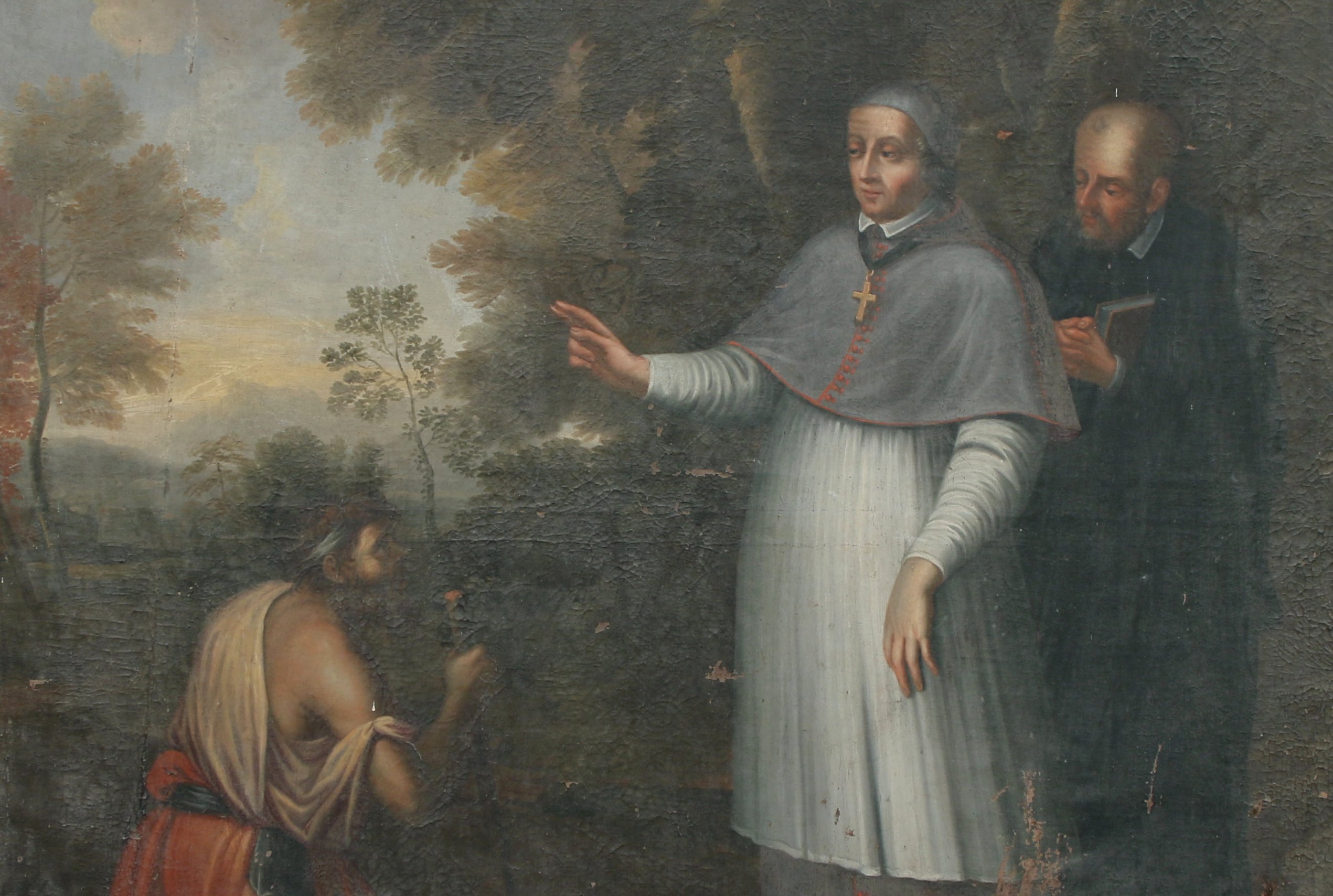 École française vers 1650BénédictionToile.Haut. 135 Larg. 130 cm. (accidents)Provenance :...