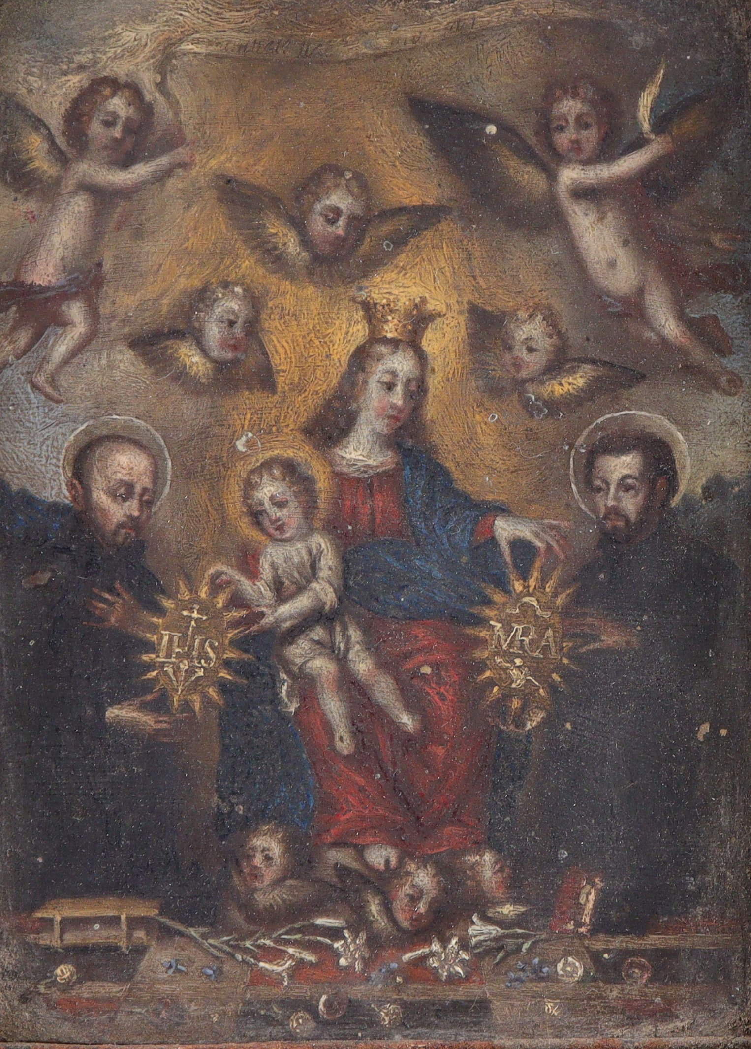 École ancienne espagnoleL'Enfant et Marie distribuent des scapulaires à deux...