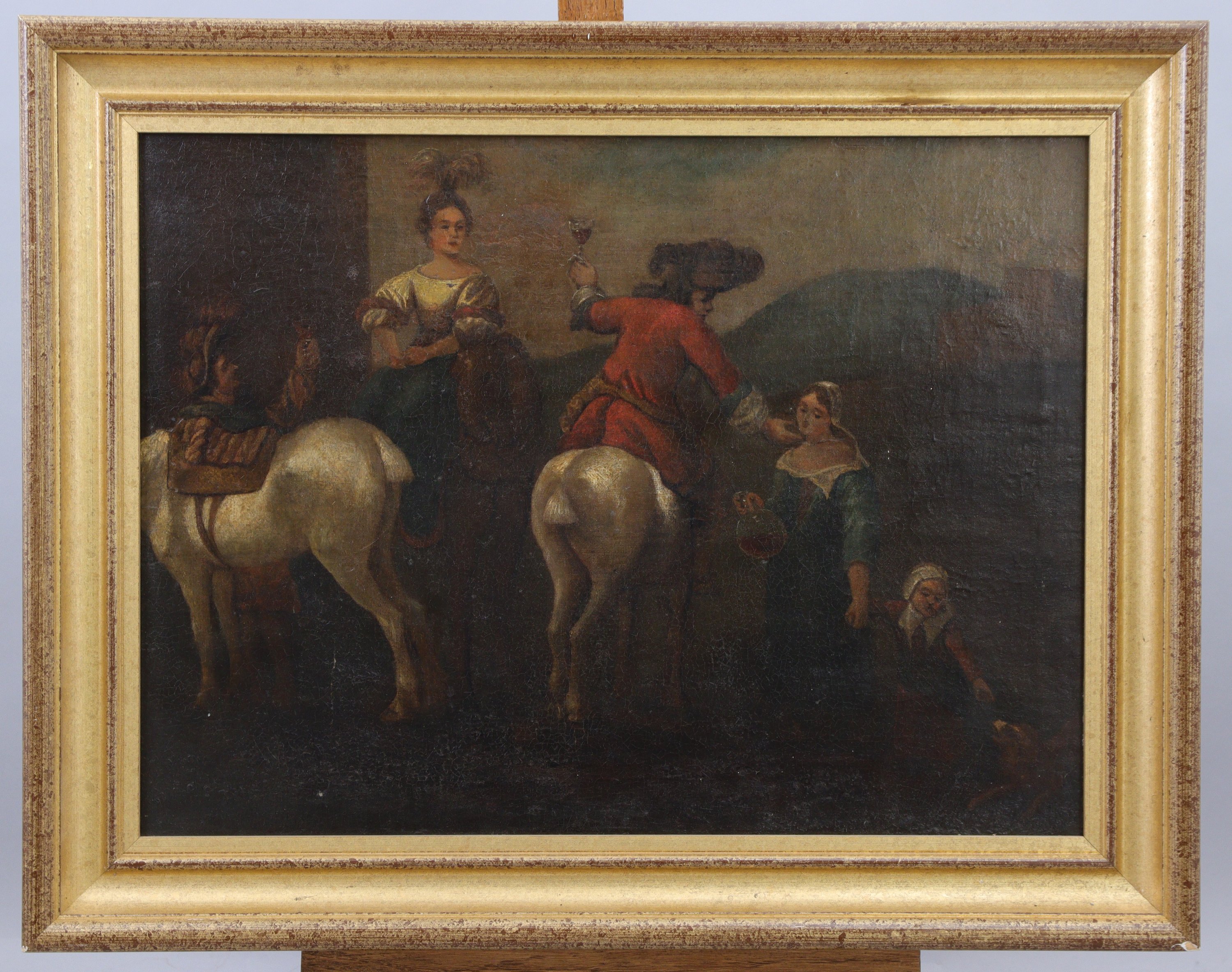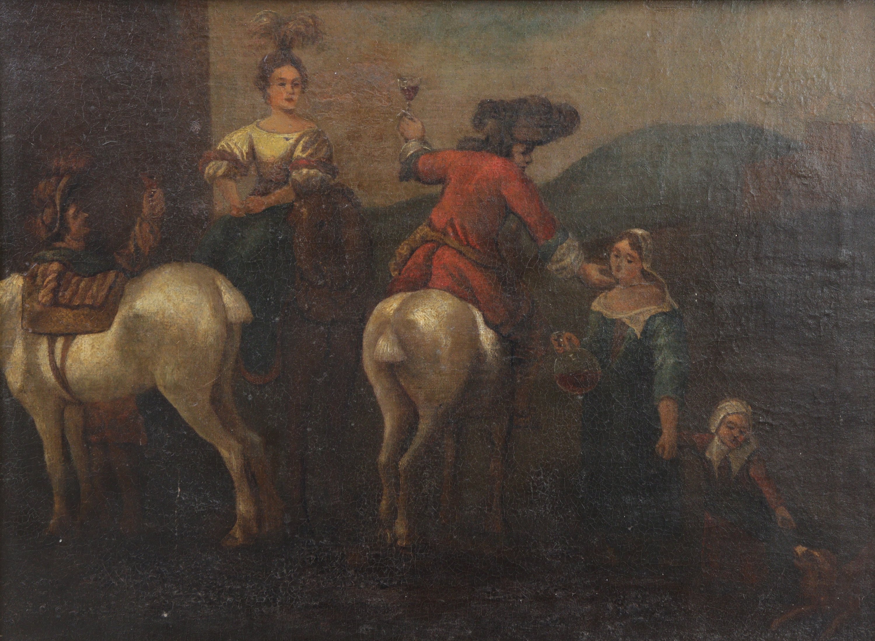 Dans le goût de Kerfurt Halte à l’écuriePanneau.Haut. 37,5 Larg....