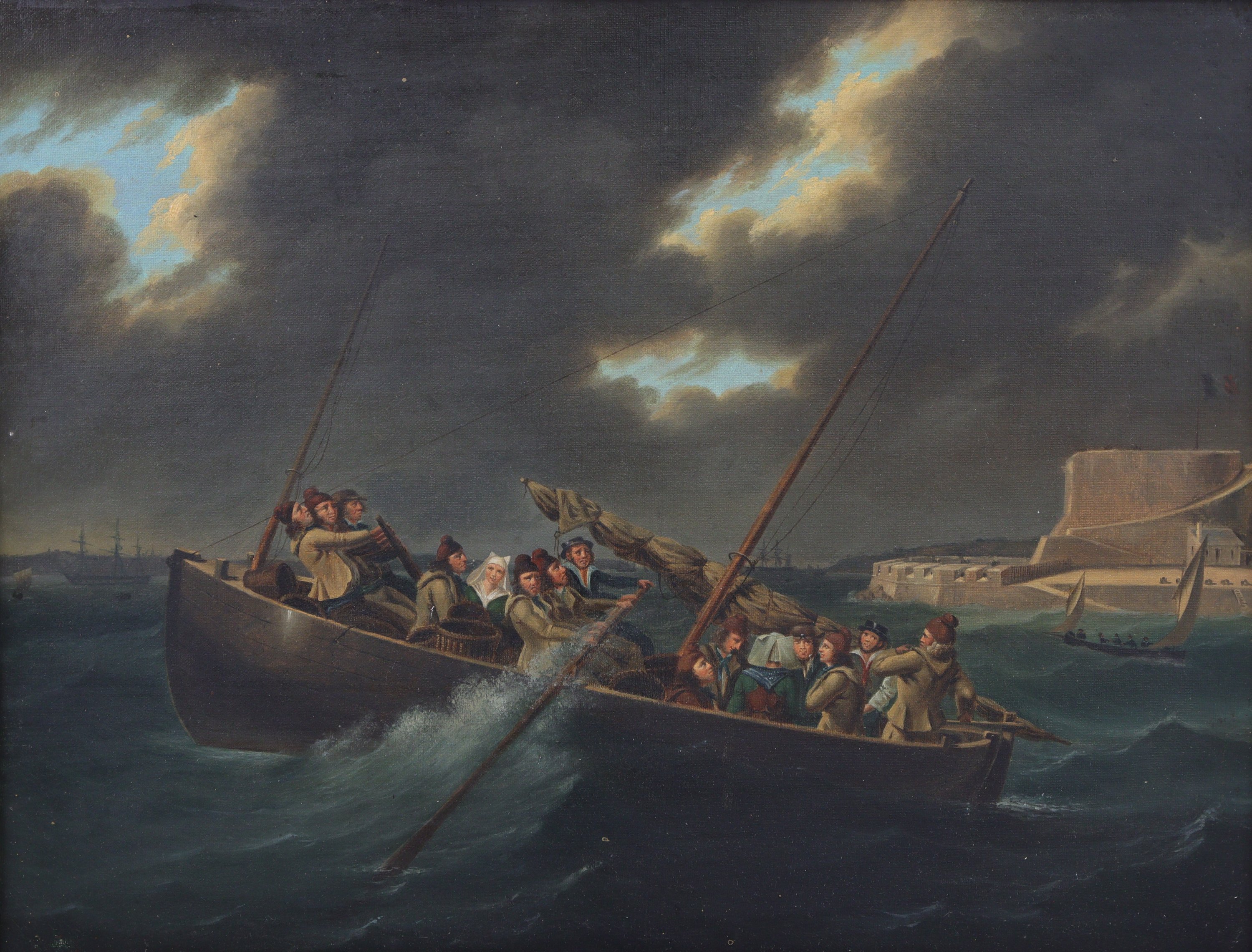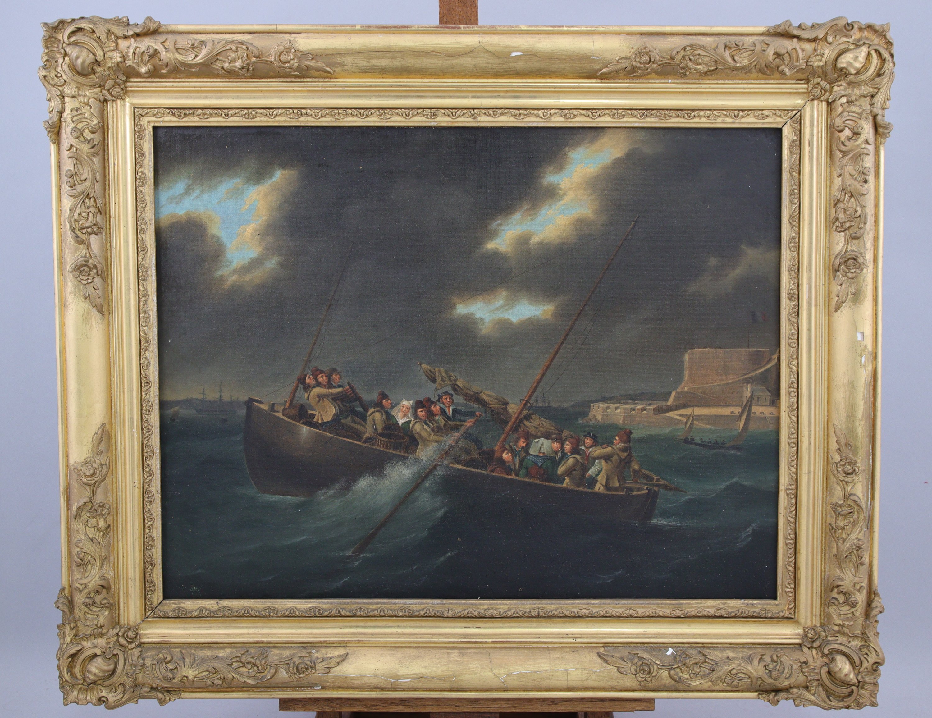École française vers 1860, entourage d'Eugène Le Poitevin (1847-1909)Barque passant...