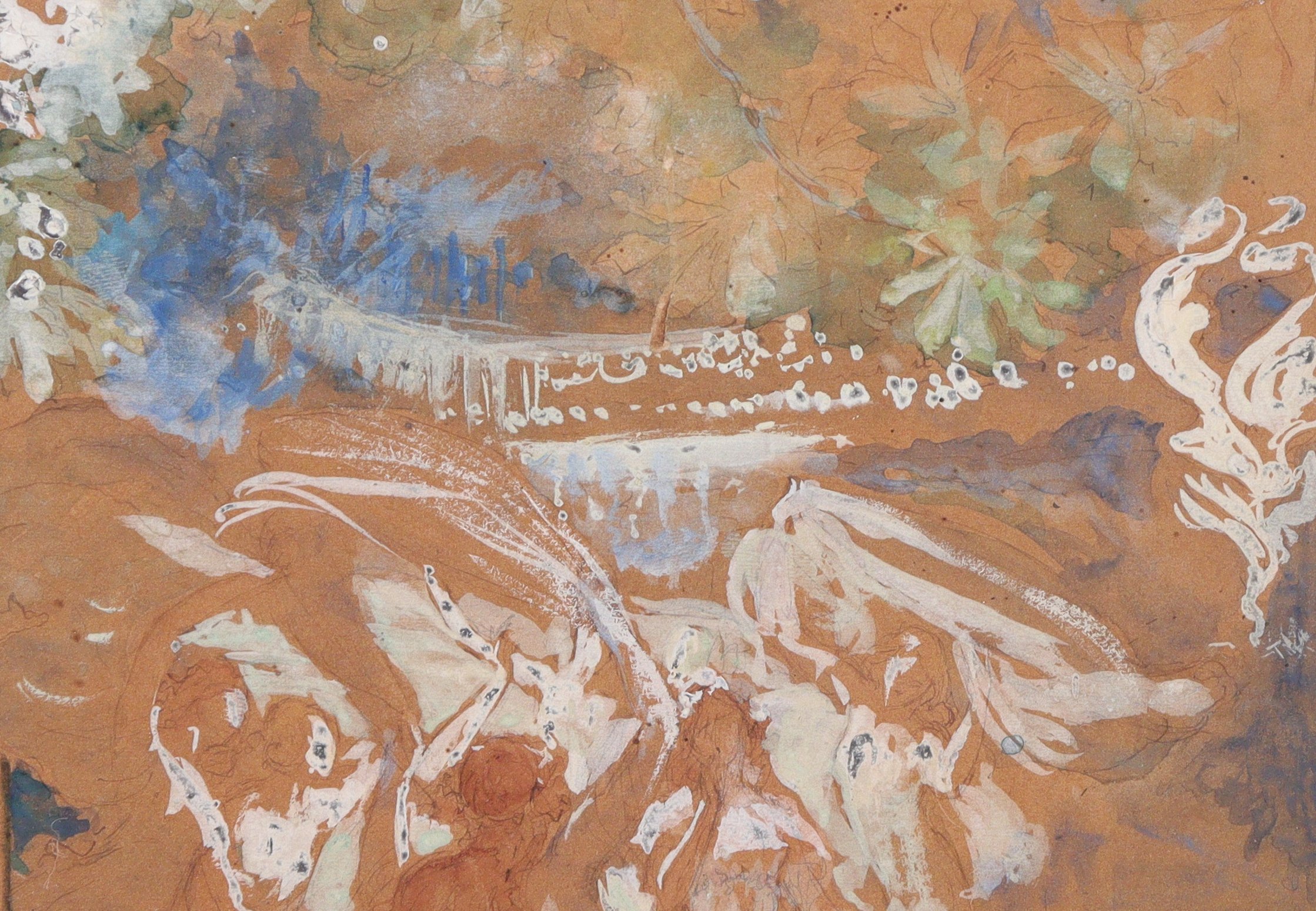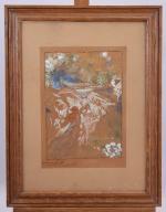 Crayon, aquarelle et rehaut de blanc sur papier.