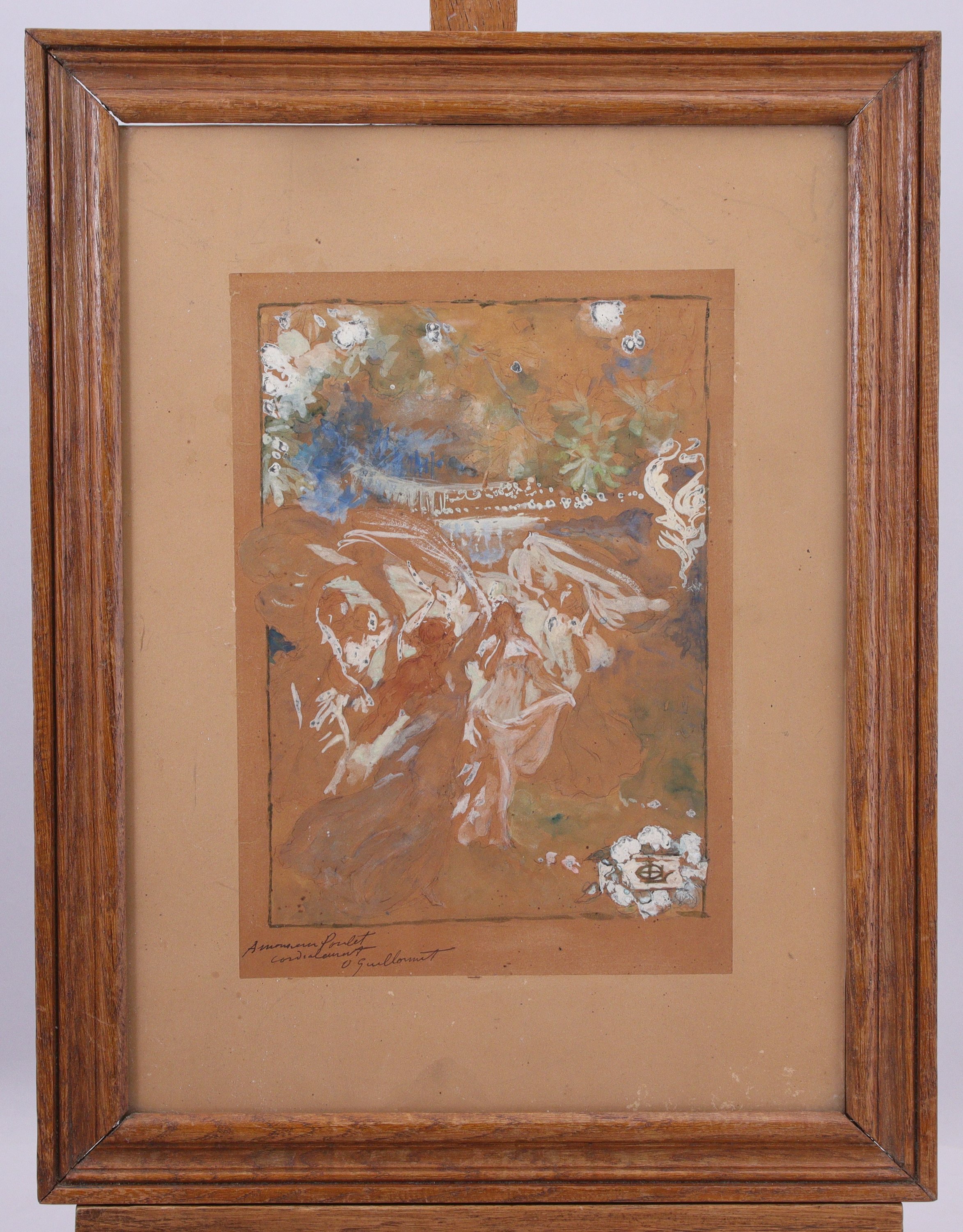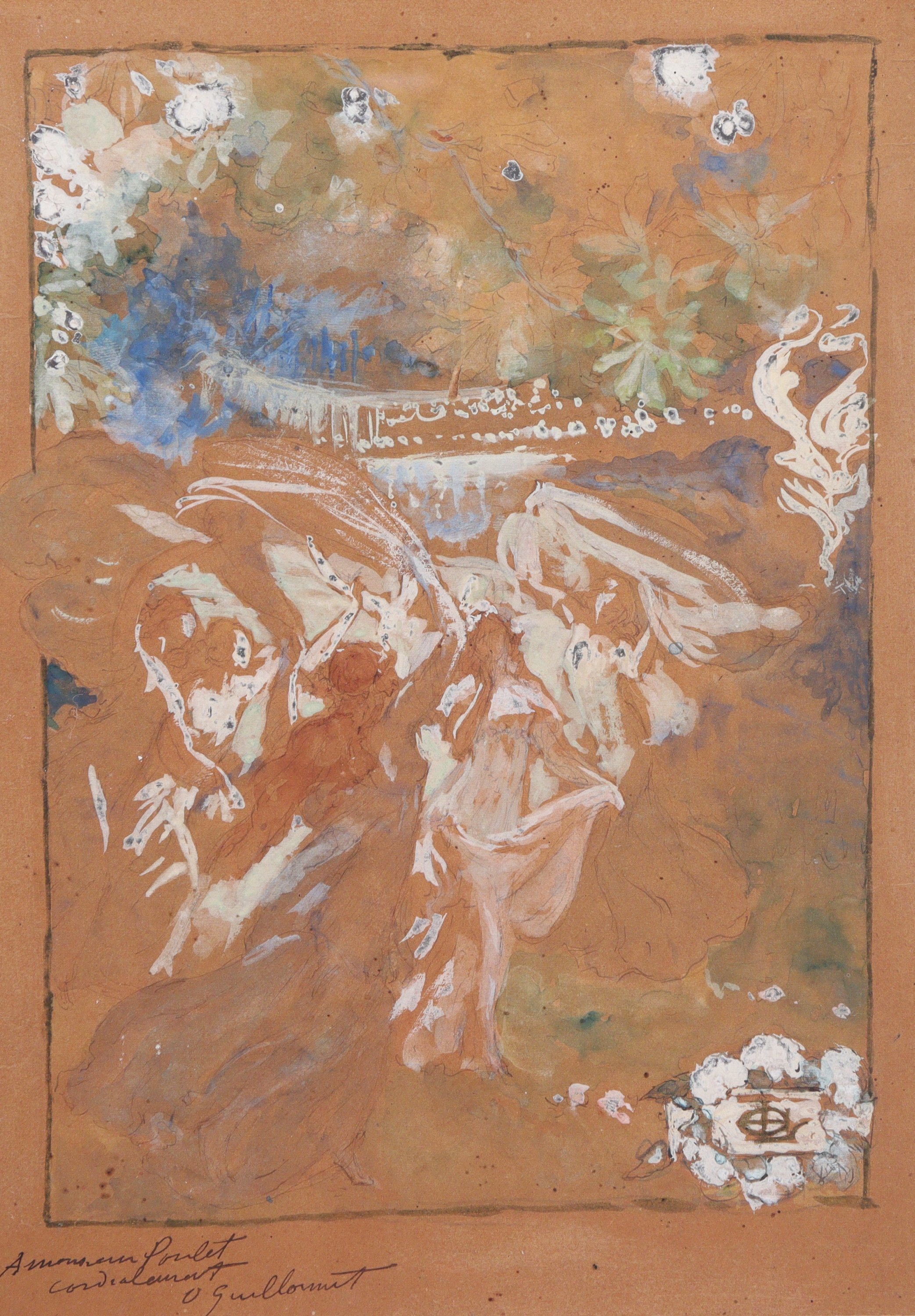 Monogrammé en bas à droite avec envoi en bas à gauche, "A... Poulet / Cordialement / O.Guillonnet".