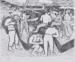 Joint : Maurice Louis Savin (Français, 1894-1973), Pêcheurs. estampe. Signée et justifiée 92/110. Haut. 33 Larg. 42,5 cm.