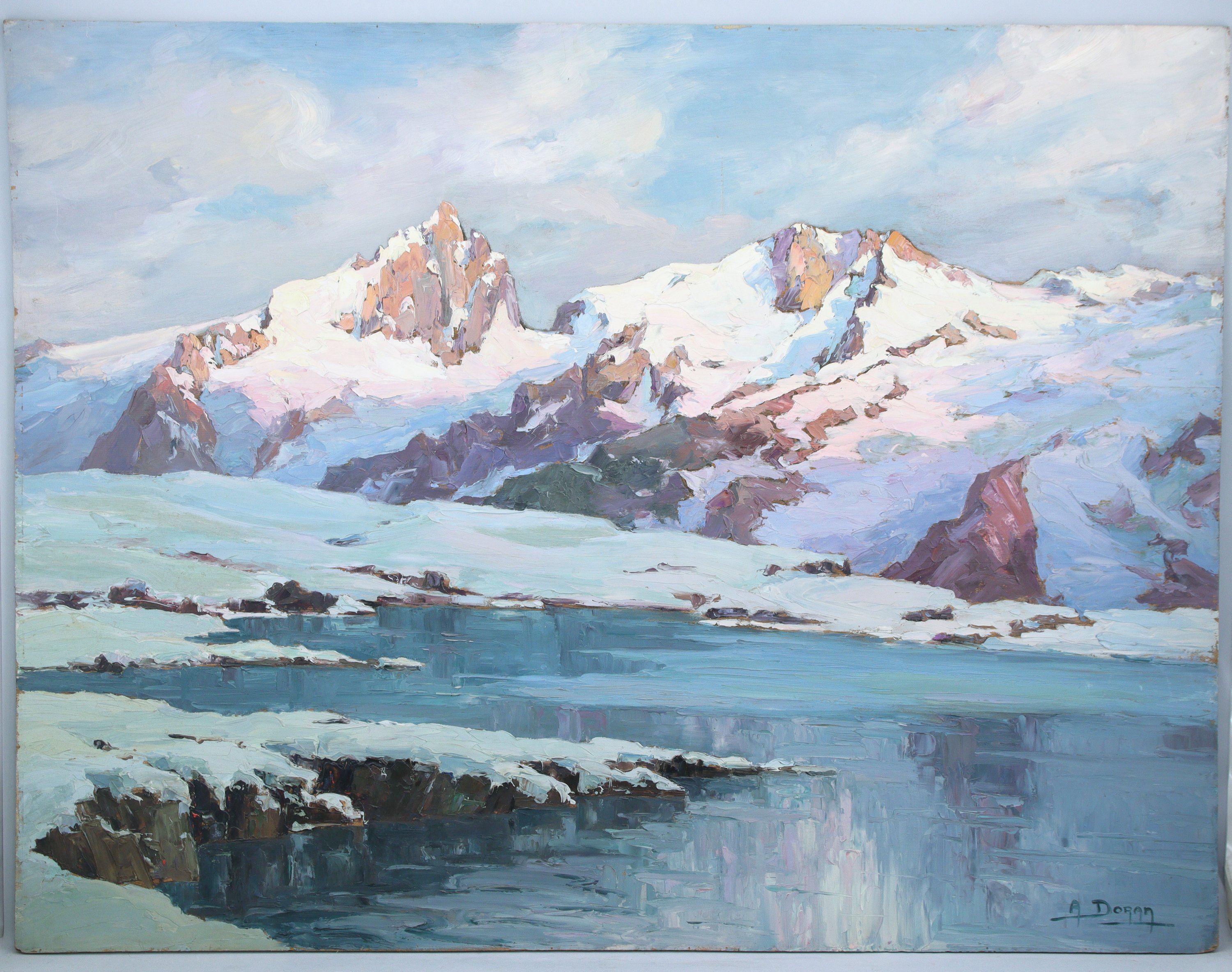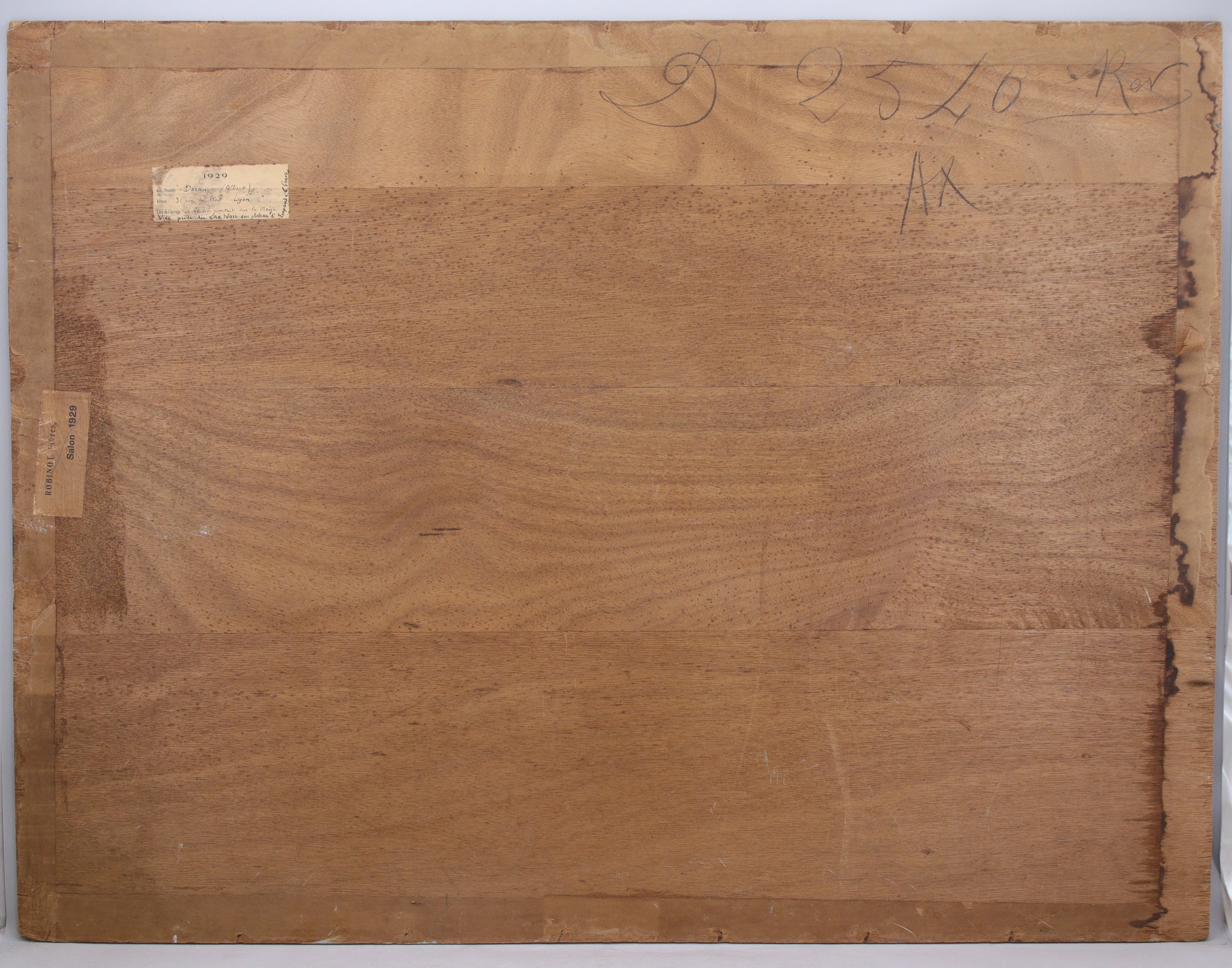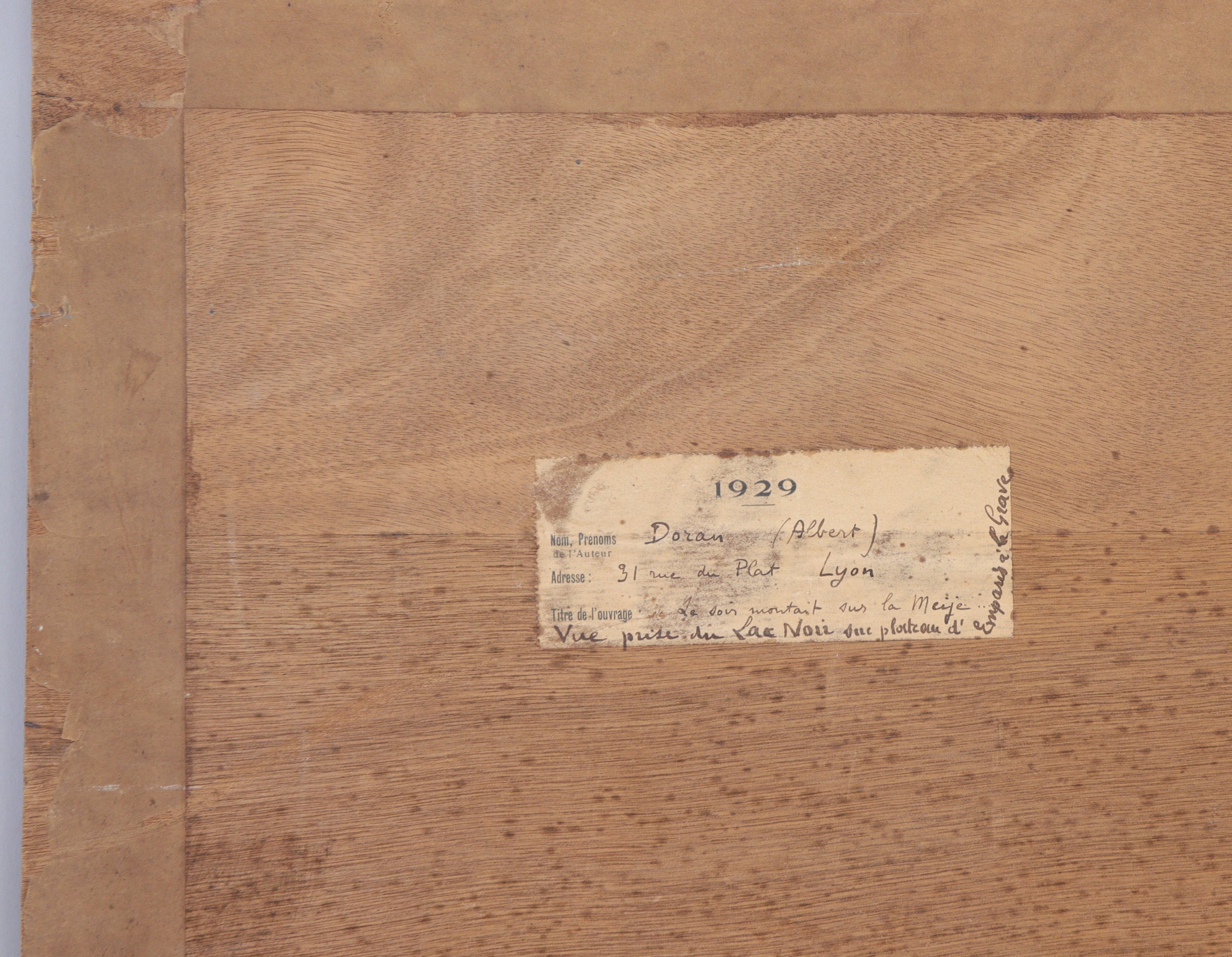 Signé, titré au dos sur une étiquette d'exposition pour un Salon en 1929 et situé : "Vue prise du Lac Noir sur plateau d'Emparis à la Grave". Numéros au dos "D2540 Rev Ax"