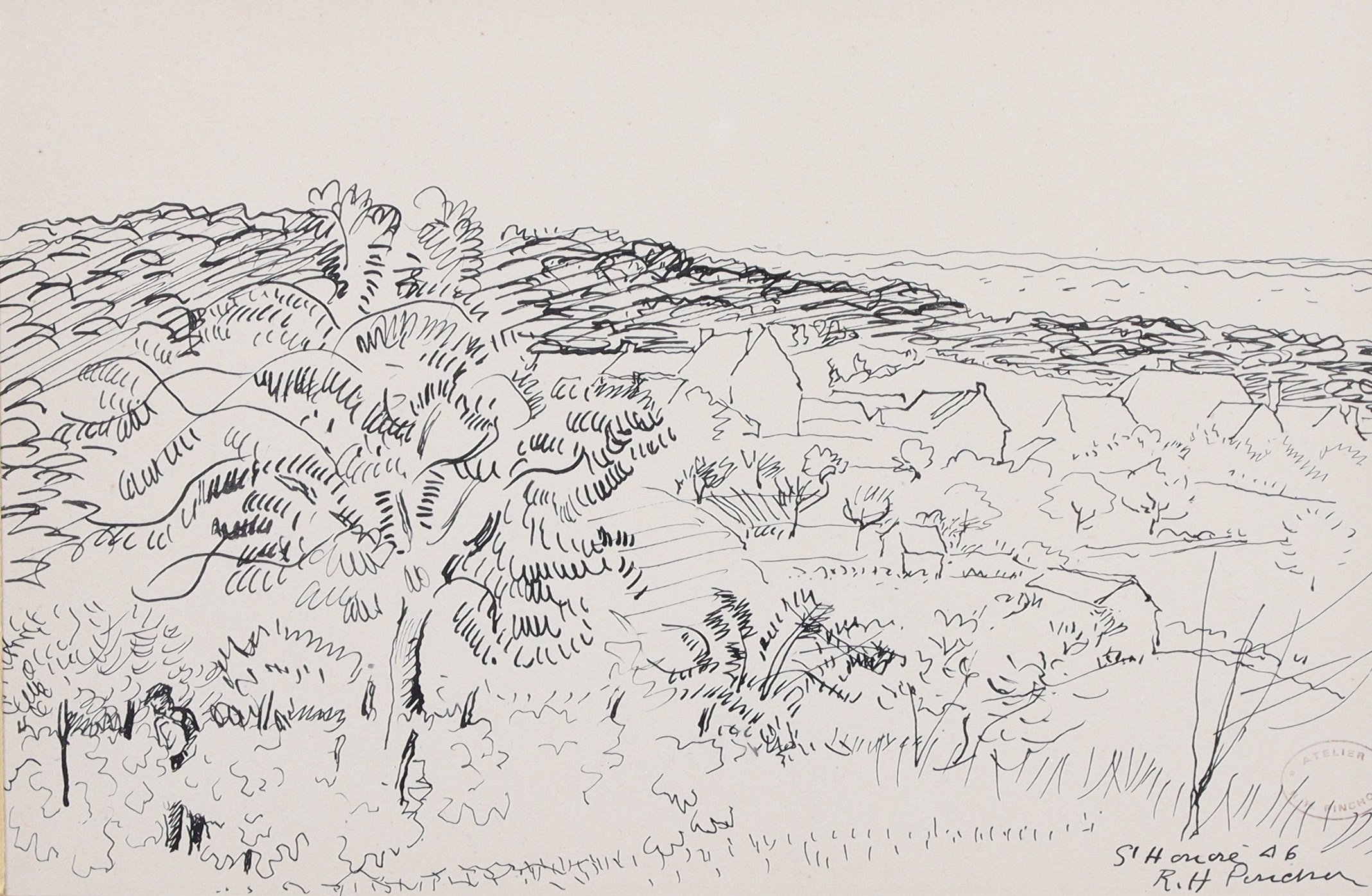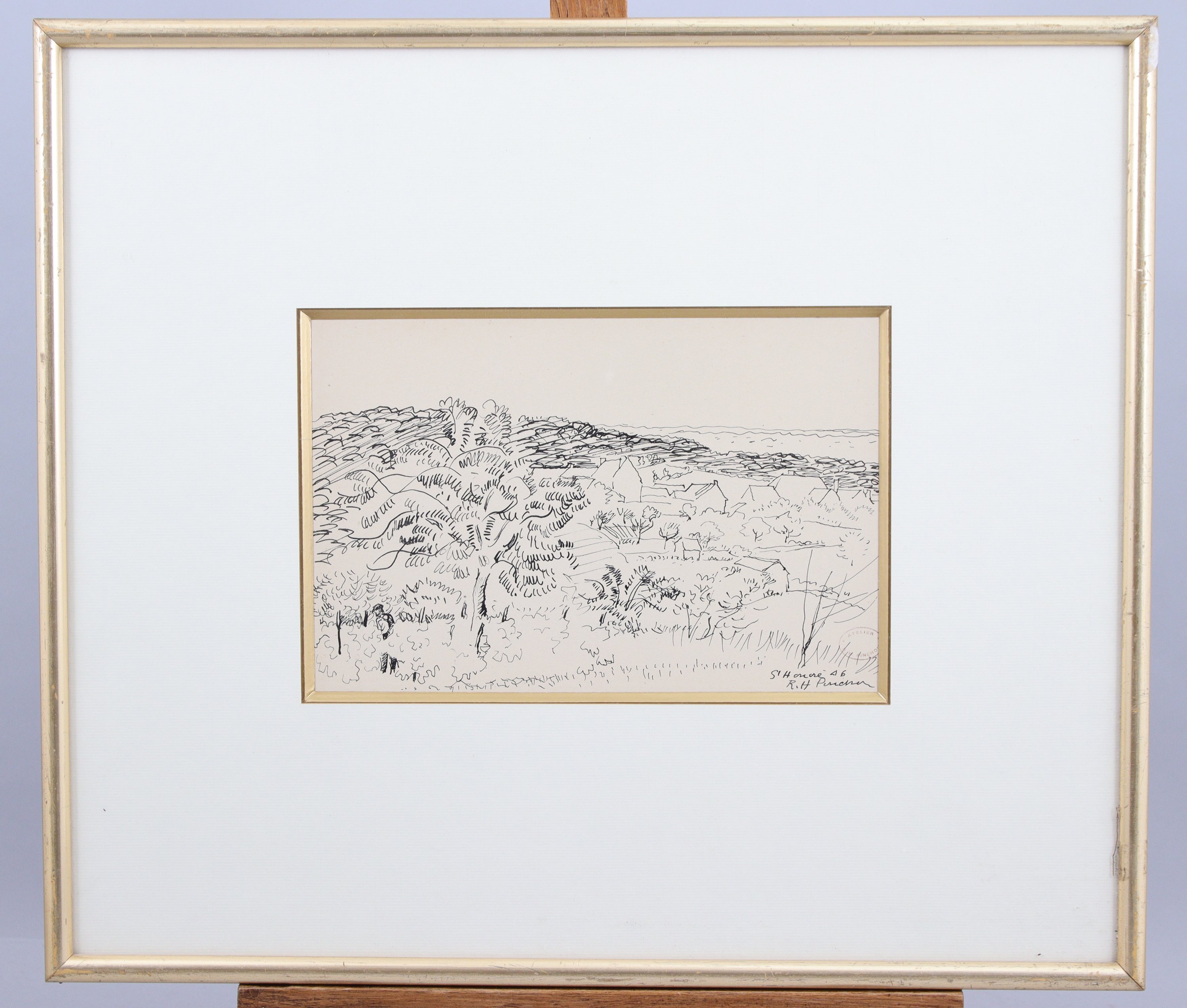 Signée et datée en bas à droite "46". Cachet d'atelier à l'encre R. H. PINCHON.