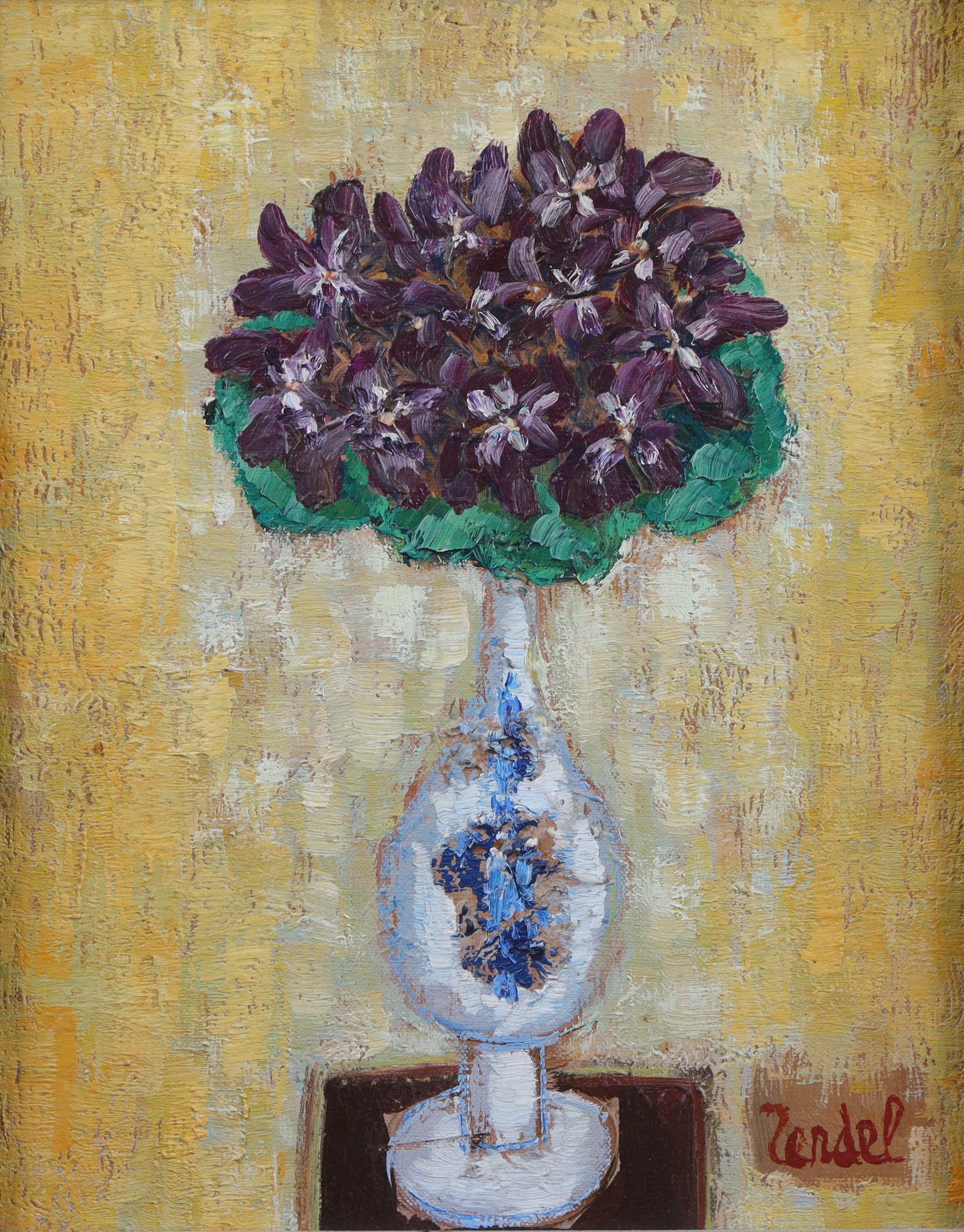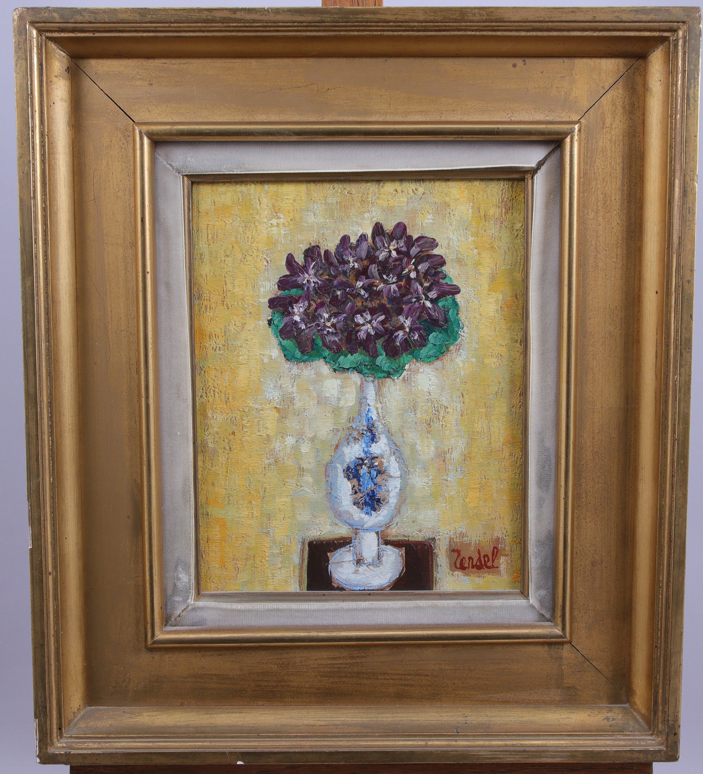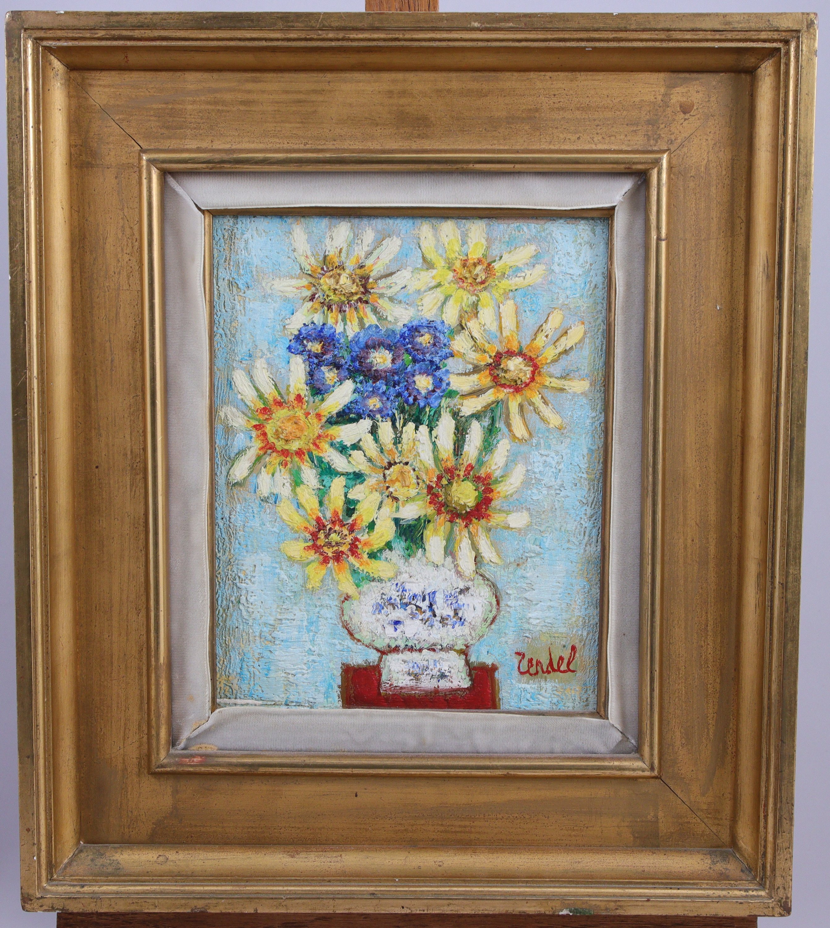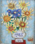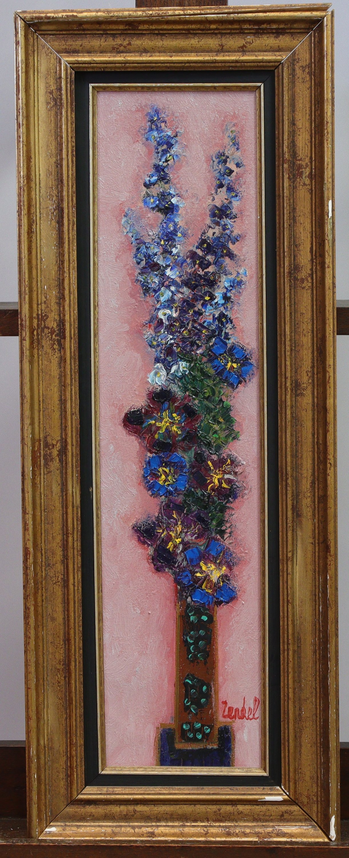 Joint : Gabriel Zendel (Français, 1906-1992), Bouquet de fleurs, toile, signée en bas à droite. Haut. 60 Larg. 15,5 cm.
