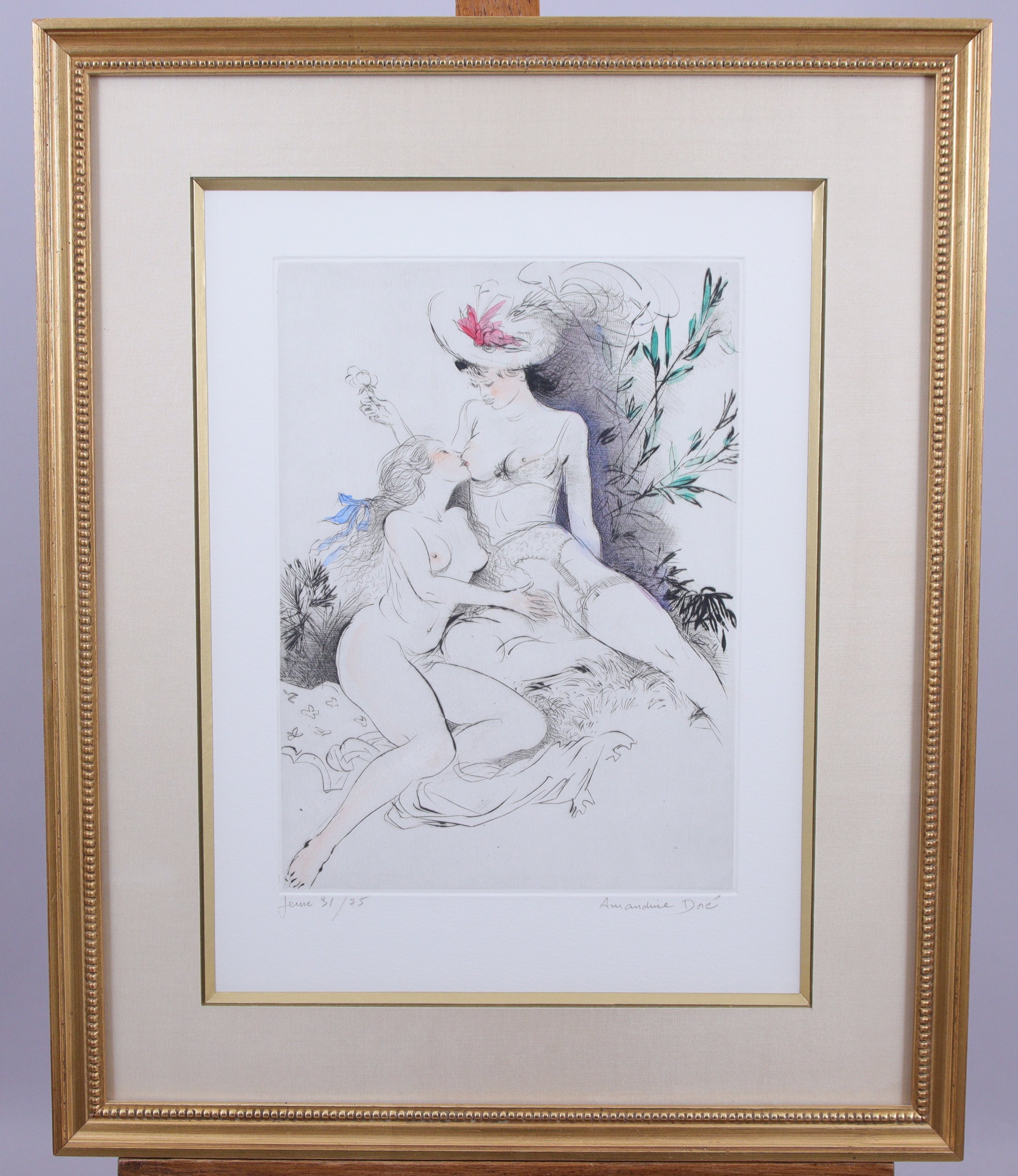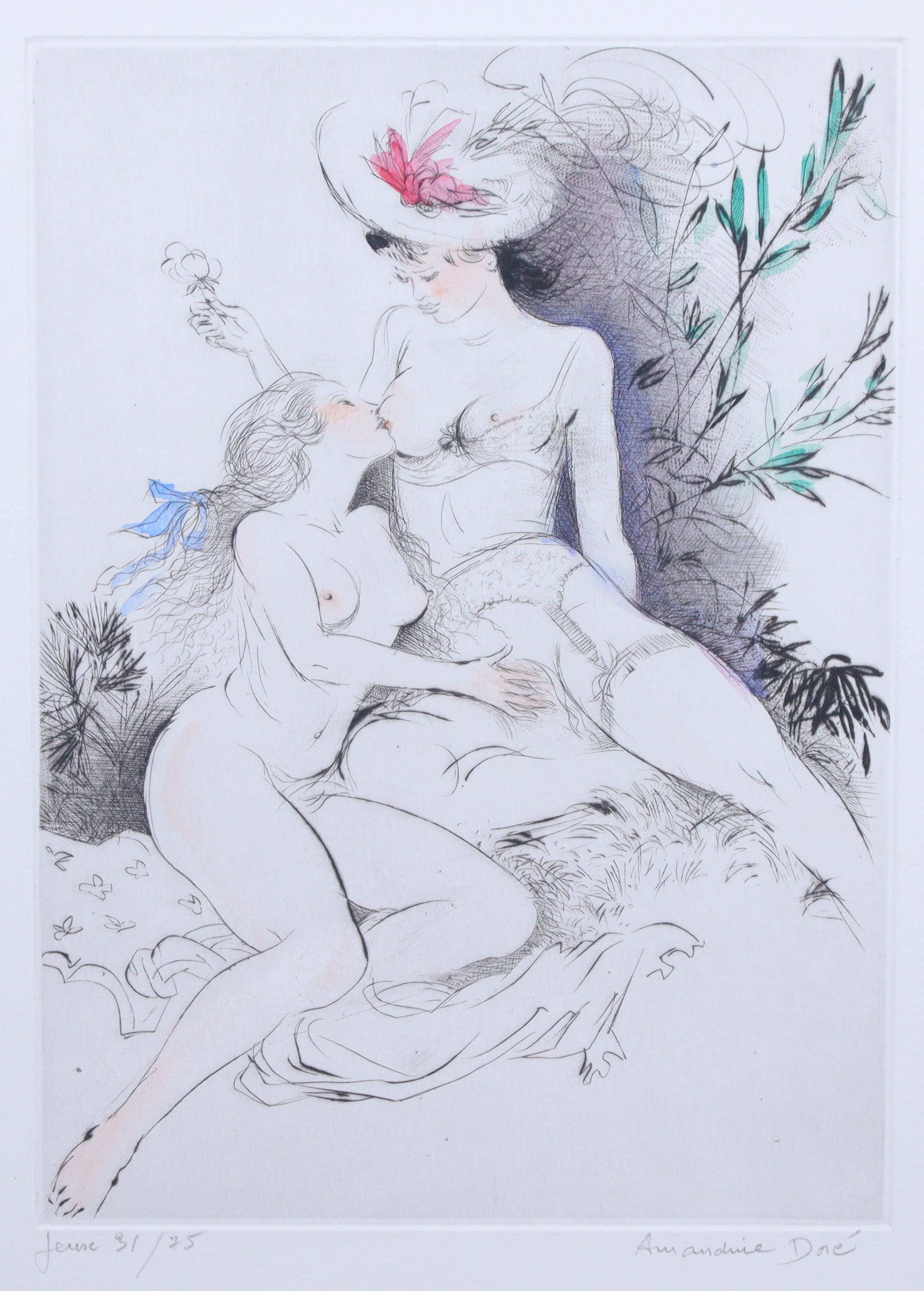 Amandine Doré (Française, 1912-2012)Couple de femmes Pointe-sèche. Signée et justifiée...