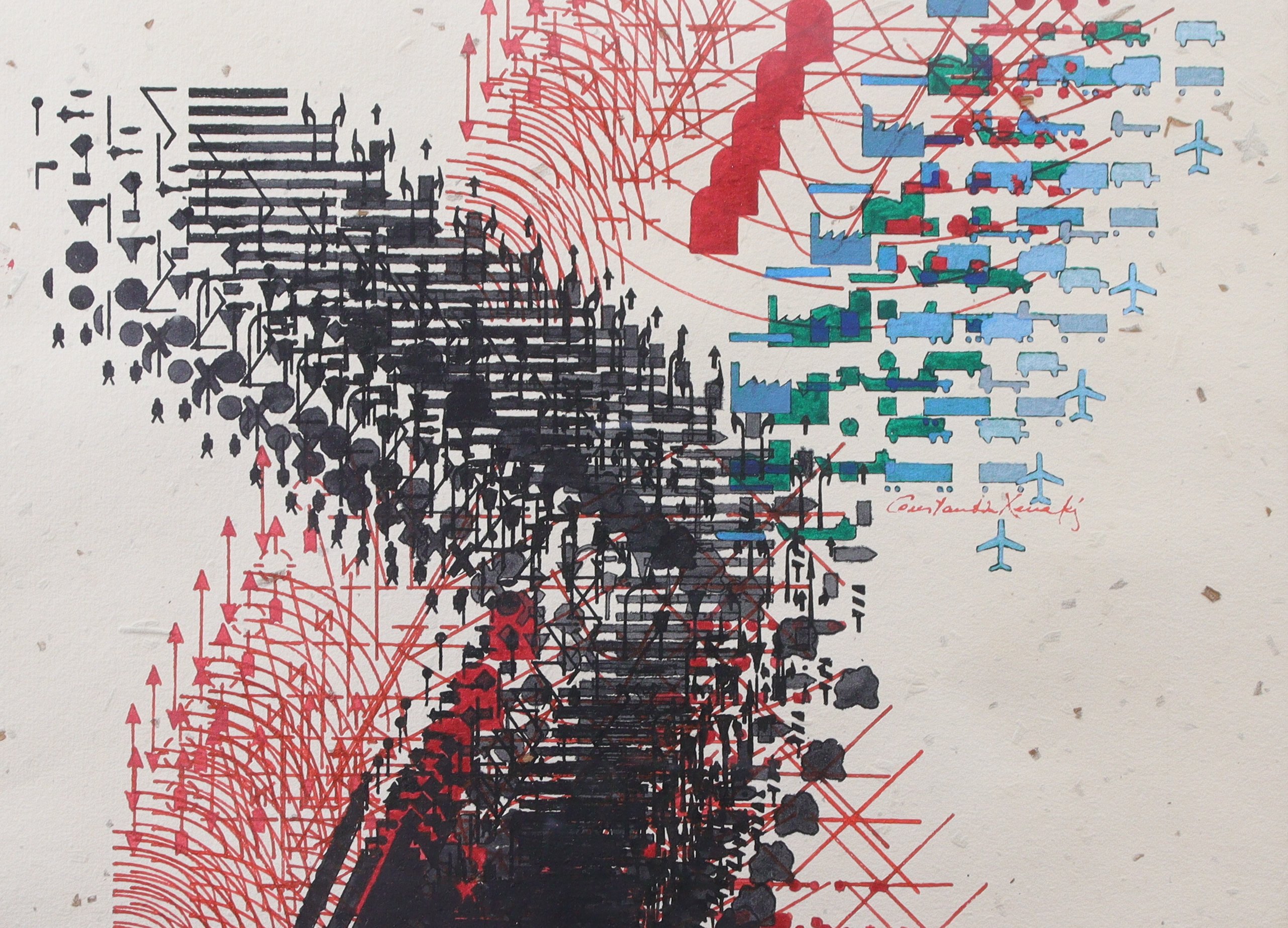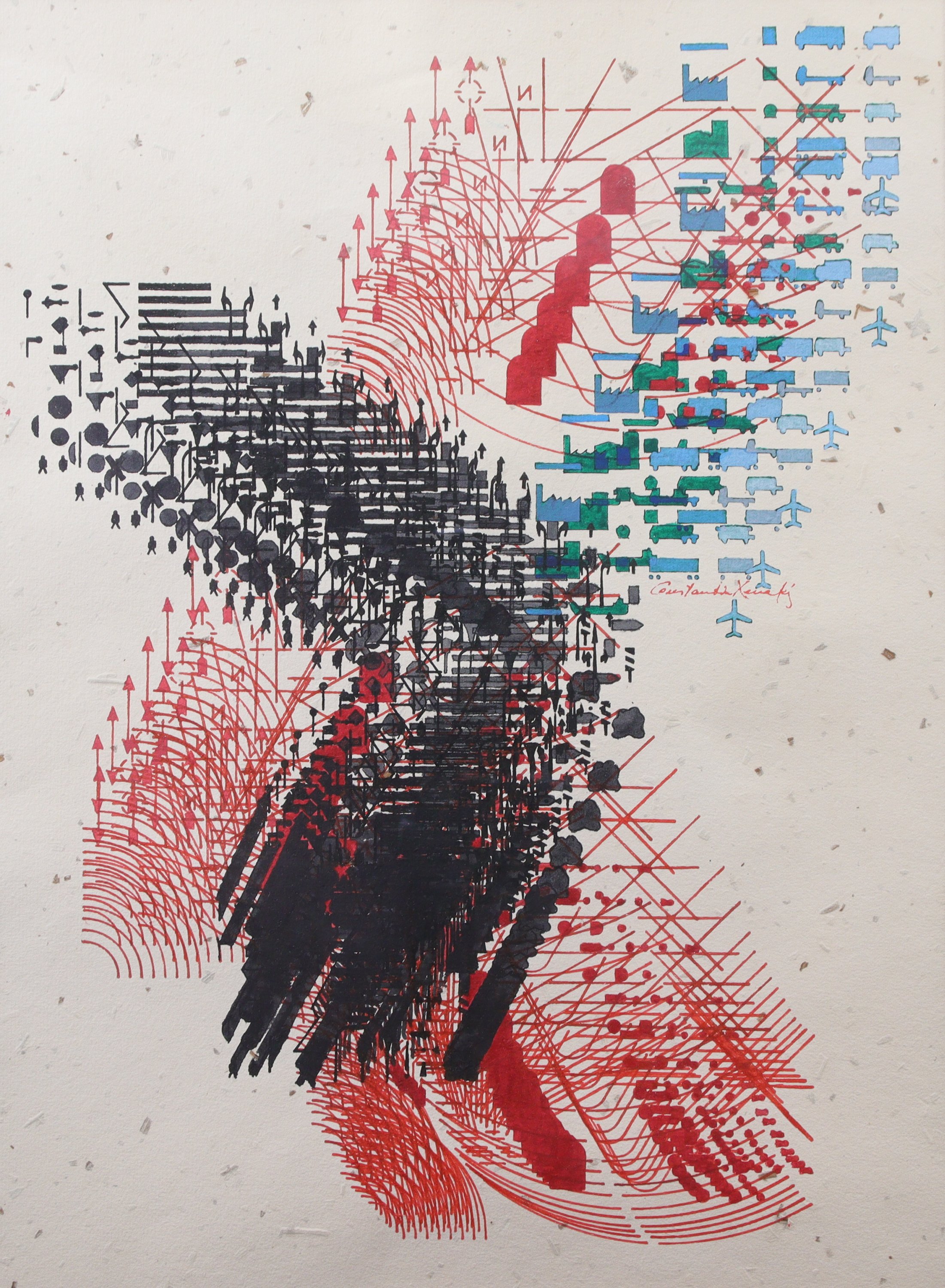 Constantin Xénakis (Égyptien, 1931-2020)"Angle droit", 1987Gouache sur papier.Signée au milieu...