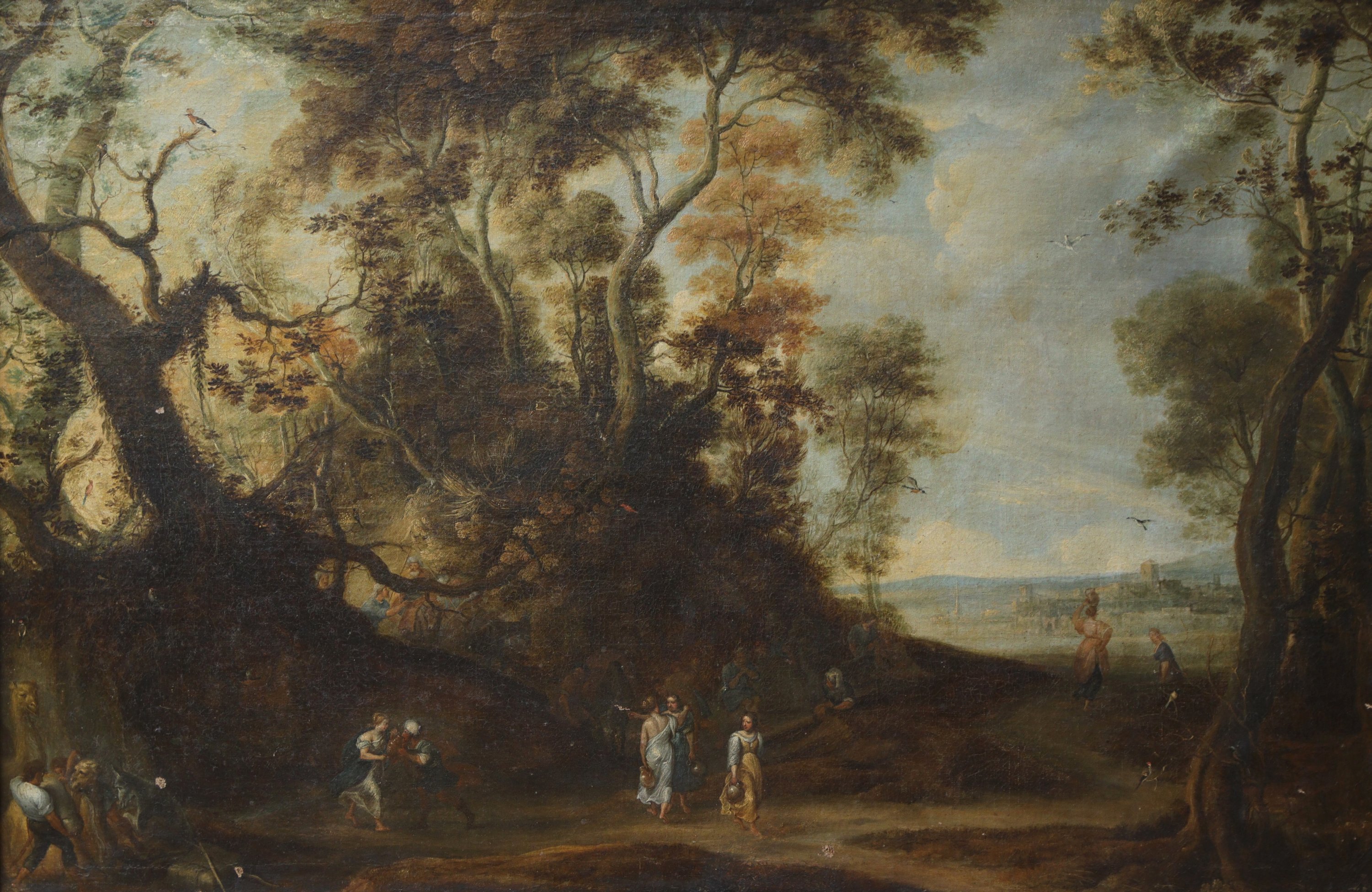 A Flemish painting attributed to Lucas van Uden and Adriaen van Stalbemt depicting the meeting of Eliezer et Rebecca.