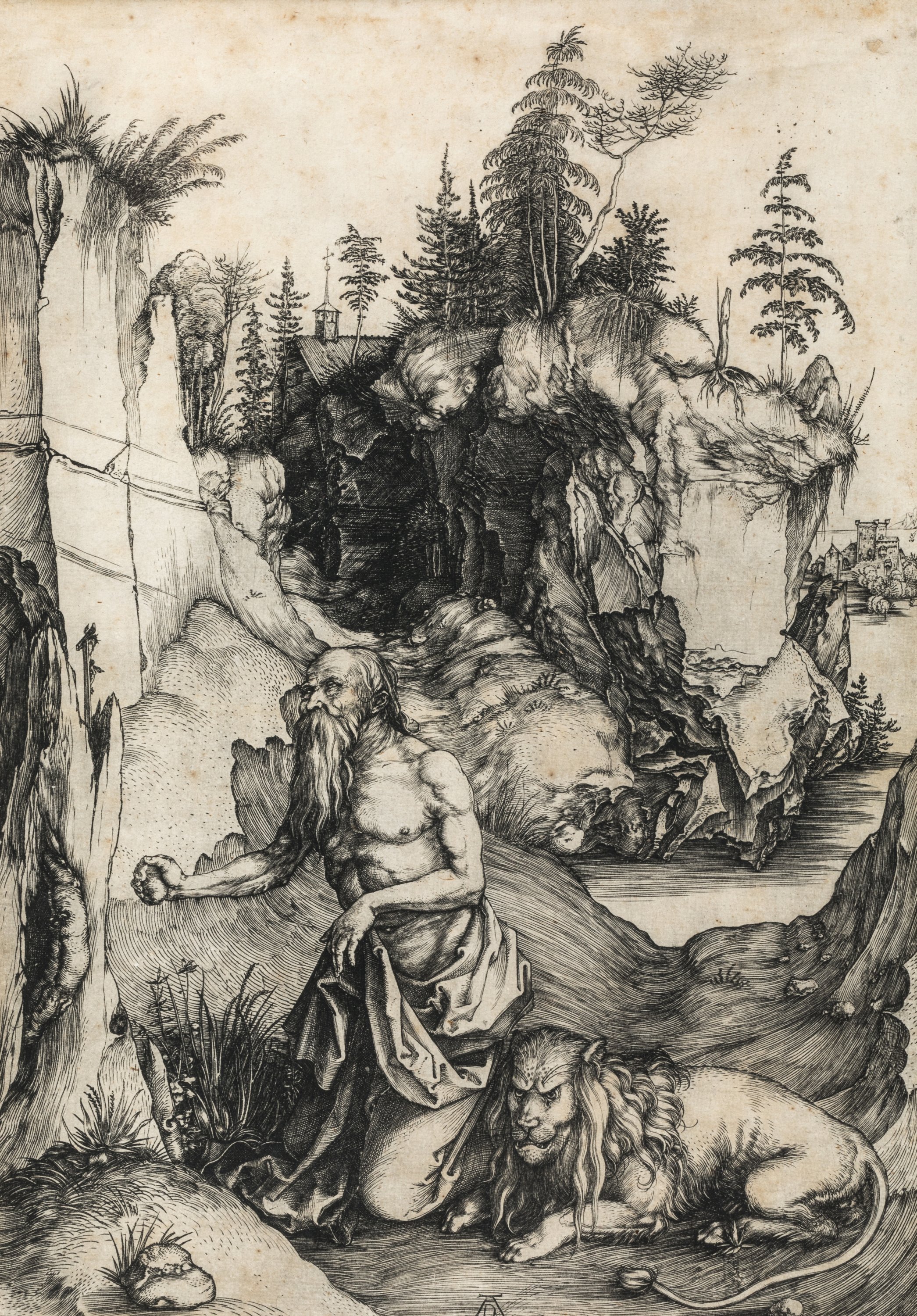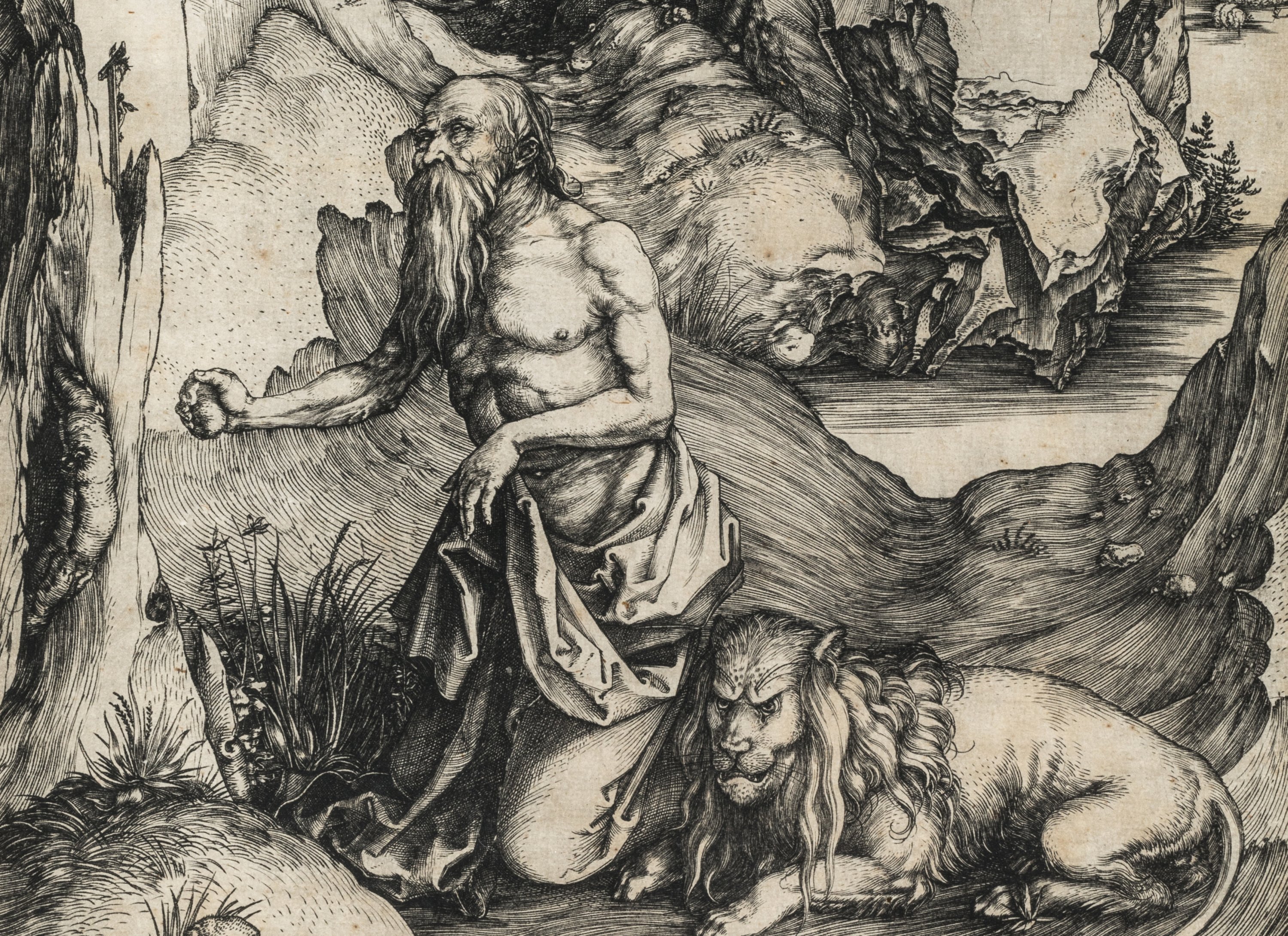 An etching by Albrecht Dürer depicting Saint Jerome.