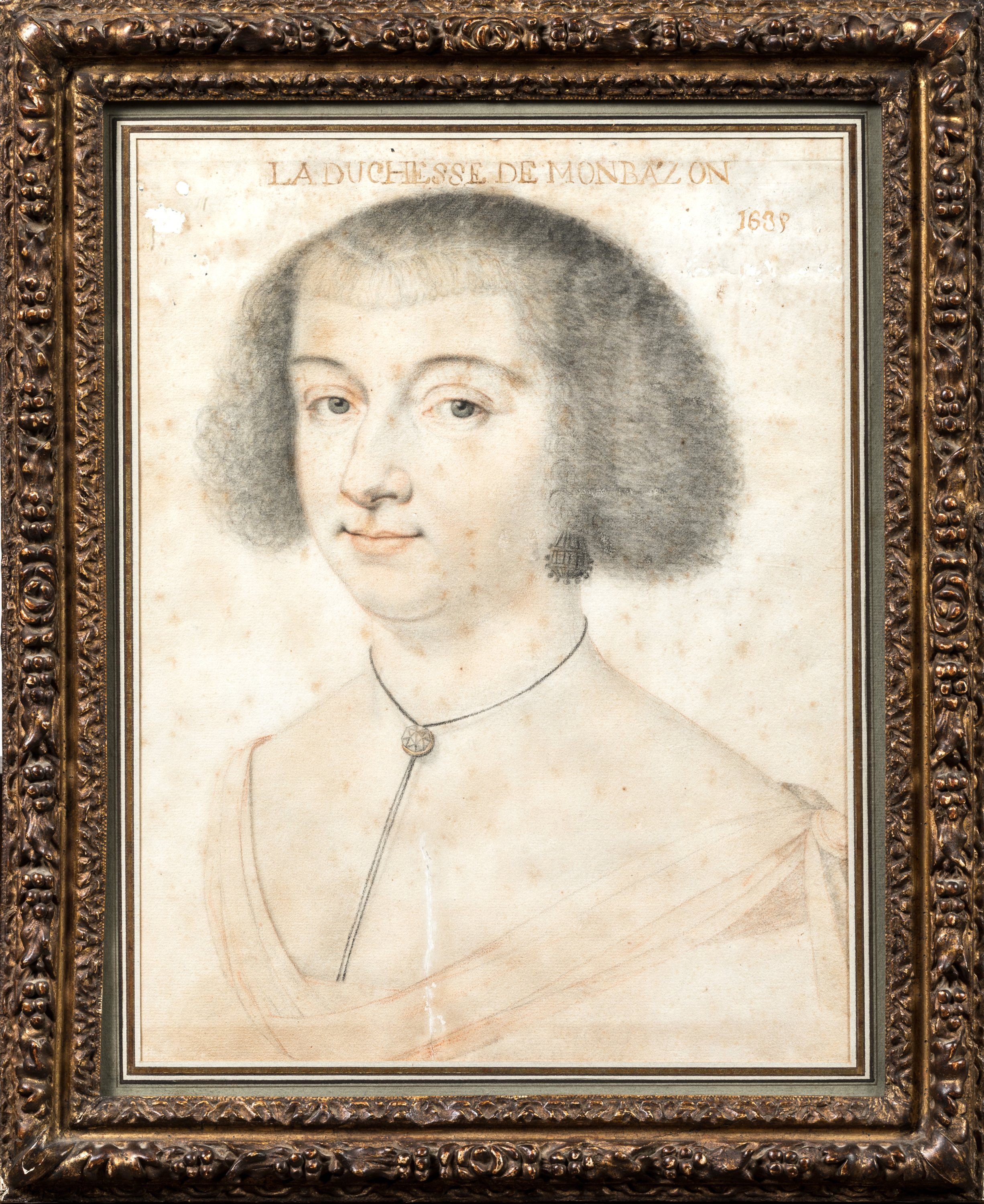 Titré et daté « LA DUCHESSE DE MONBAZON 1638 » en haut.