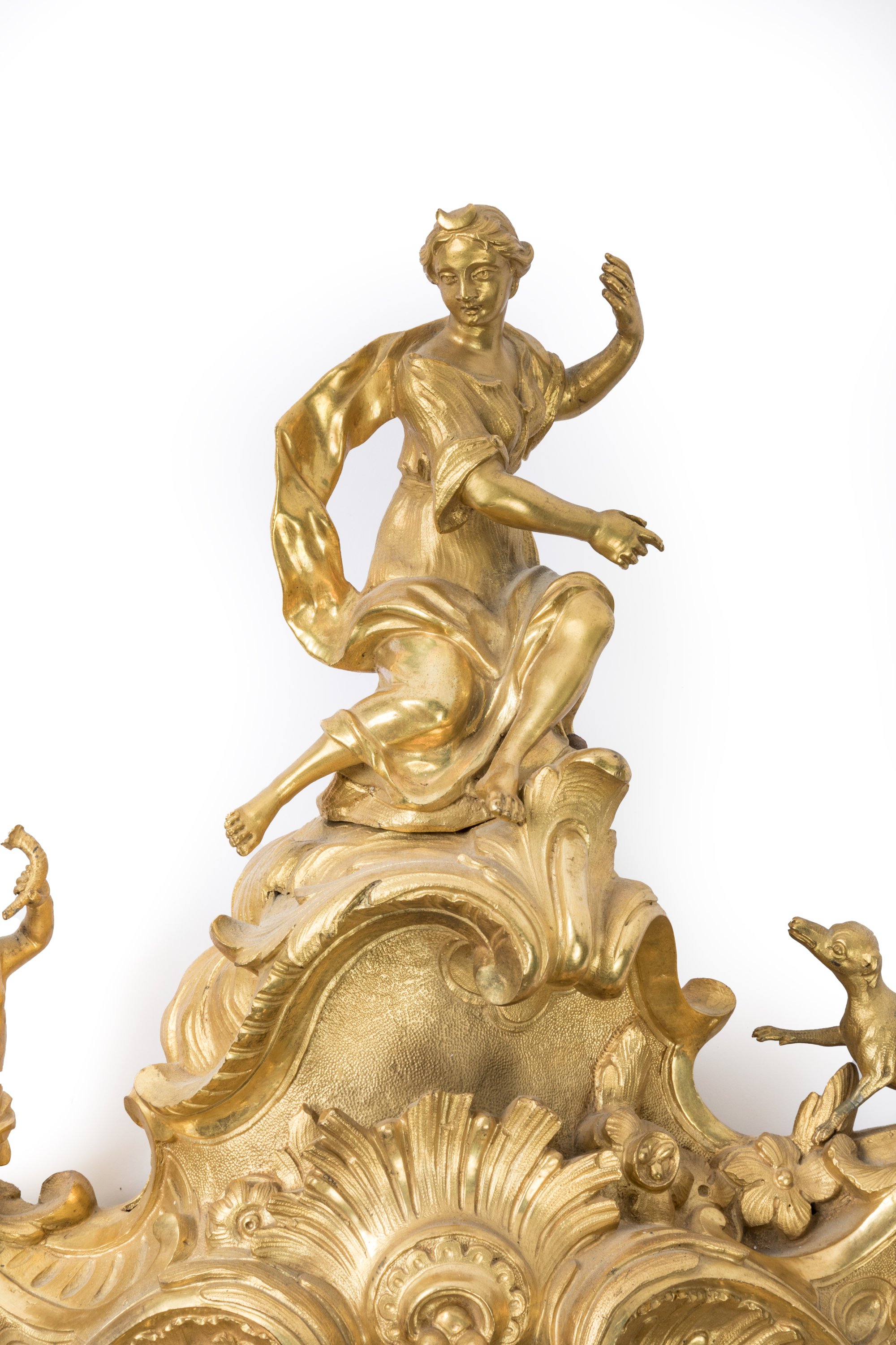 Louis XV. A gilt bronze rococo clock topped by a figure of Greek goddess Diana by Charles-Nicolas Cressent and Antoine-Nicolas Duchemin.